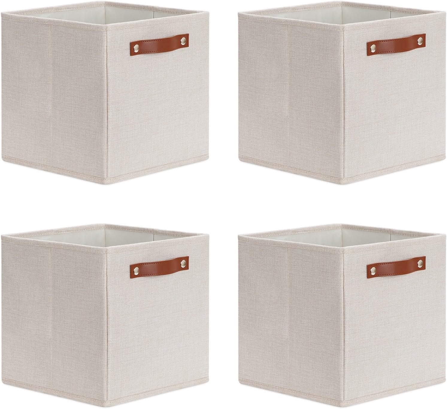 • 【Unique Design & Modern & Decorative】Set of 4 , dimensions(each): 11(L) x 11(W) x 11(H) inches. Home organization Baskets bring you organizing convenience and a sweet home. The fabric baskets with neutral colors can match many home styles - keeping your home nice and tidy.