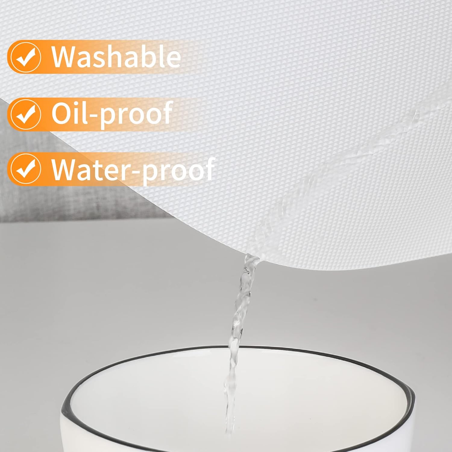 - SAFE MATERIAL AND NON ADHESIVE: Our kitchen shelf liner is made of high quality food-graded material, which is soft and durable without odor or BPA. So it is safe to be used directly in contact with fruit and vegetable. What’s more, the drawer liner is non-adhesive so you can easily remove to clean or to change the liner.