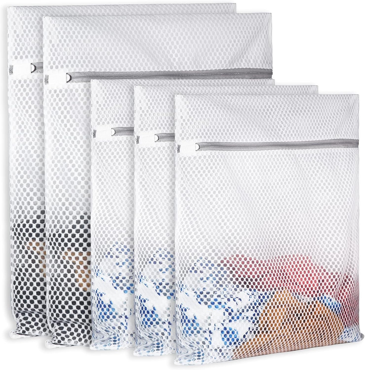 • 5Pcs Set:2Large, 3Medium,and extra strong: ,our 16" x 20" (40 x 50 cm), 12" x 16" (30 x 40 cm) laundry bag made of a high-quality durable material (125g honey comb mesh) for a long-lasting usage.