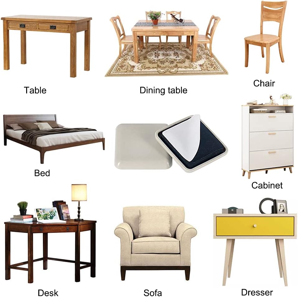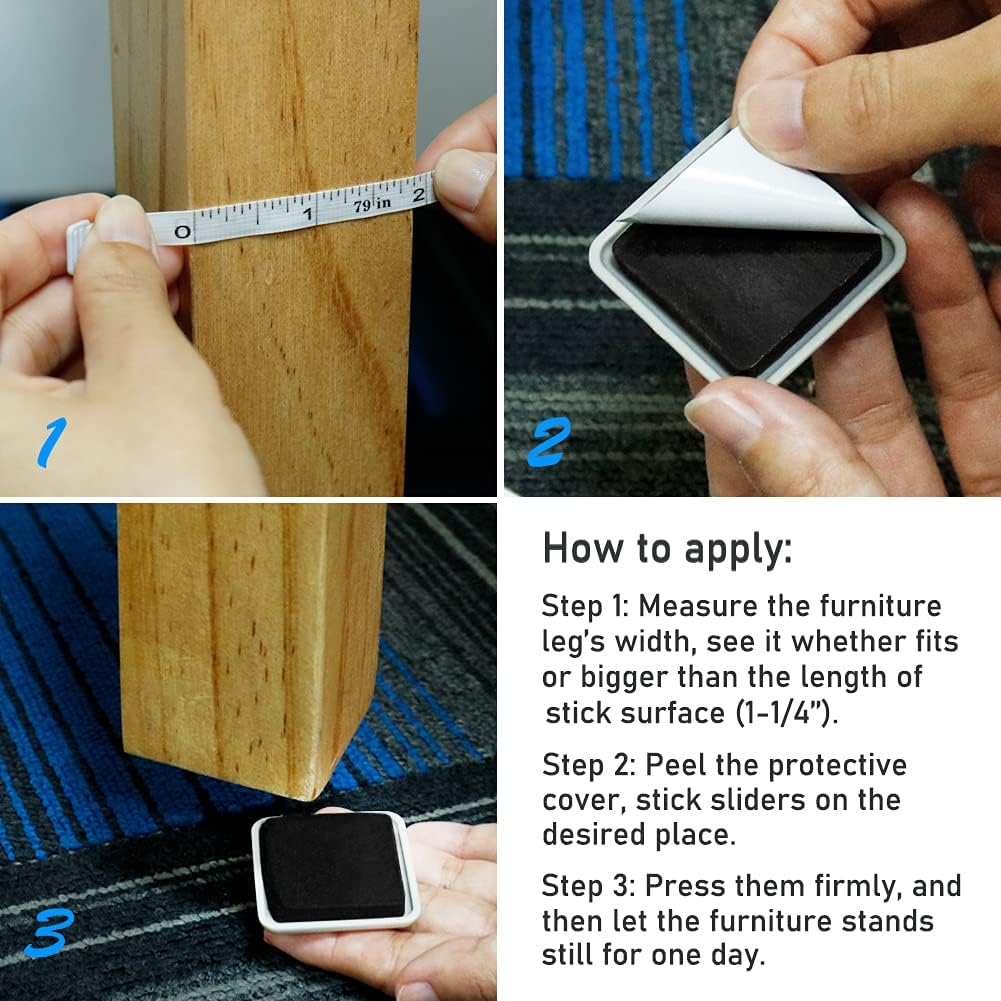 • WIDE APPLICATION - With strong adhesion, the carpet sliders can be easily stick to wood, glass, metal, plastics, widely used on dining table, desk, chairs and other furniture legs fit the size