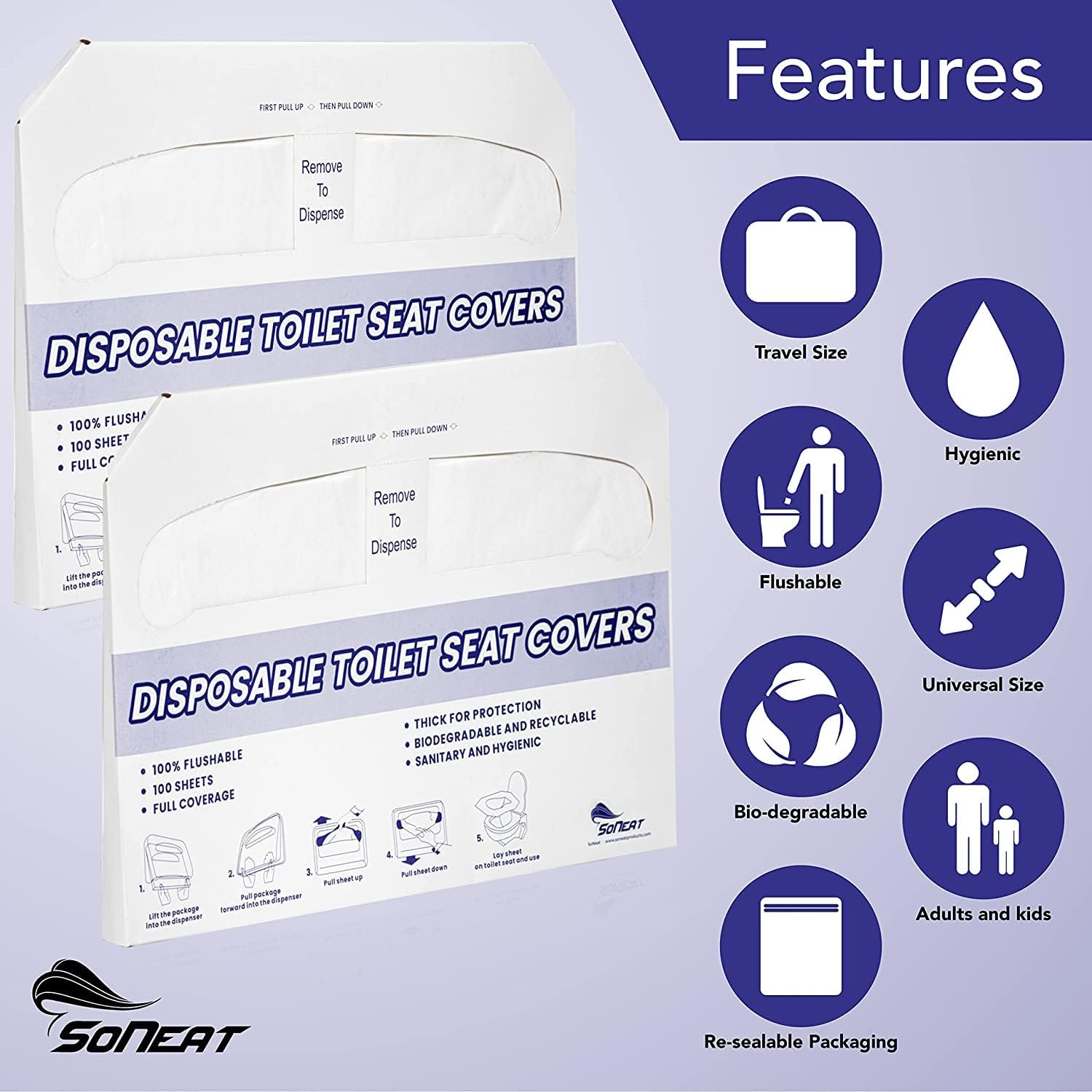 • Flushable & Eco-Friendly - Flushable toilet seat covers disposable break down easily in water and are septic-safe. Made from 100% recycled paper fiber, these bathroom seat covers reduce waste while ensuring hygiene.