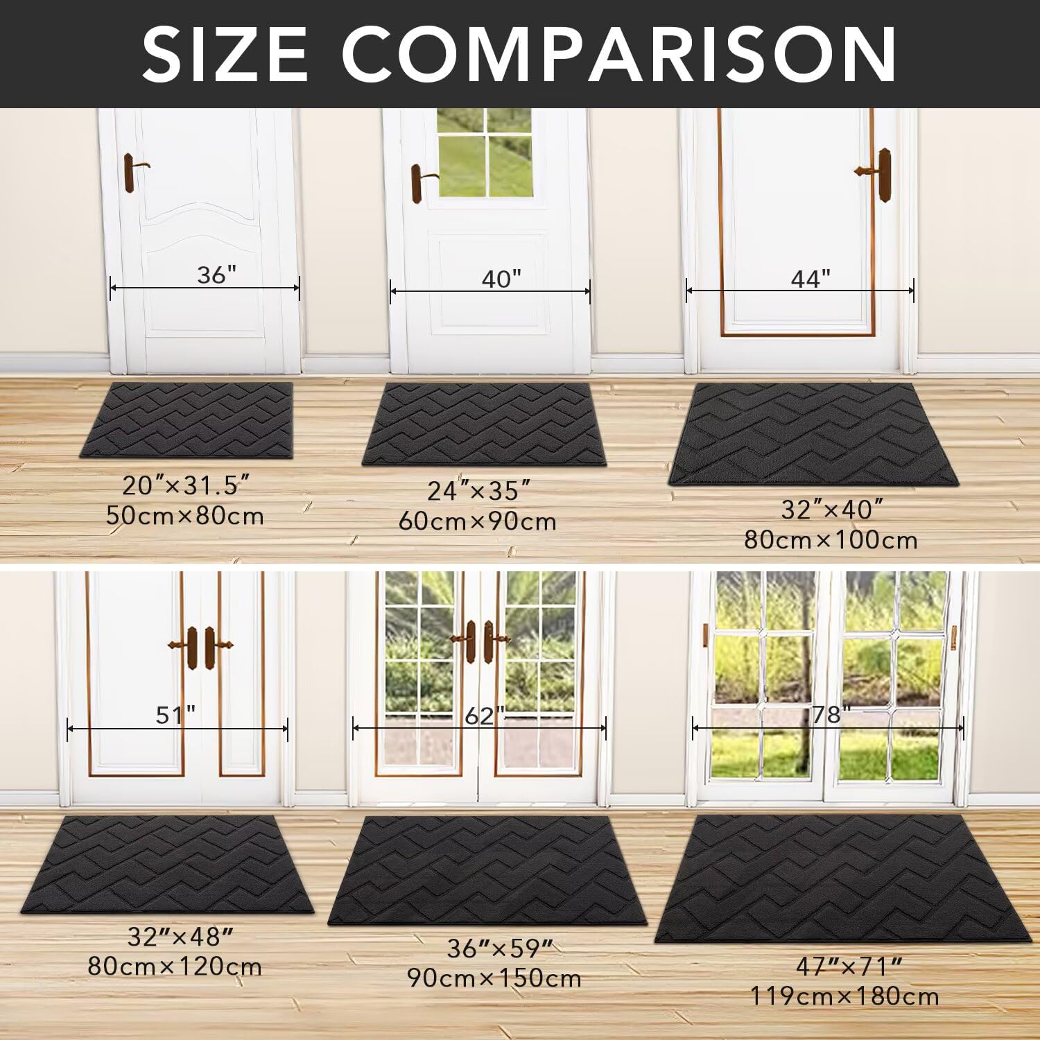 • WIDE USE: Our doormat widely used for all weather, works as front door mat, outdoor door mat, welcome door mats, indoor mats for entryway, shoe mat, dog doormat, floor mats, ect. It can scrap off dirt, water, dust,grit, sand,mud, slush, sleet, grass or retain, snow.