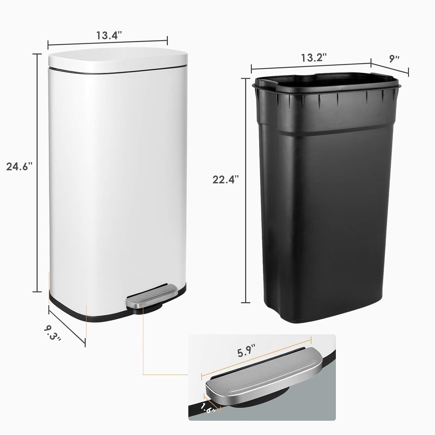 - 【REMOVABLE INNER BARREL】Kitchen trash can is equipped with a detachable plastic inner bucket, the straight shape can hold more trash and facilitate the replacement of trash bags. Inner barrel has no ends and gaps, which is very convenient for daily cleaning.When the garbage bag accidentally bursts and overflows, you can easily lift the removable inner bucket for cleaning.
