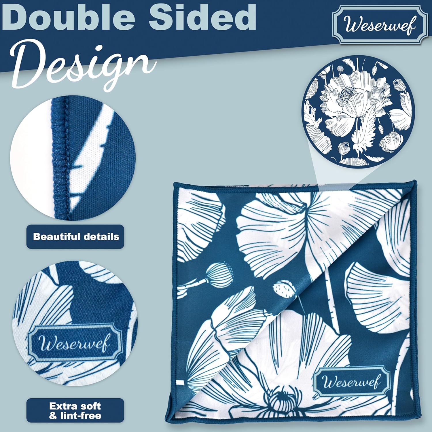 WESERWEF Design Microfiber Glasses Cleaning Cloth – Premium Cleaning Cloth for Eyeglasses, Screens, Tablets, Cameras & Lenses, 12" x 12", Ultra-Soft & Scratch-Free (Blue Poppies)