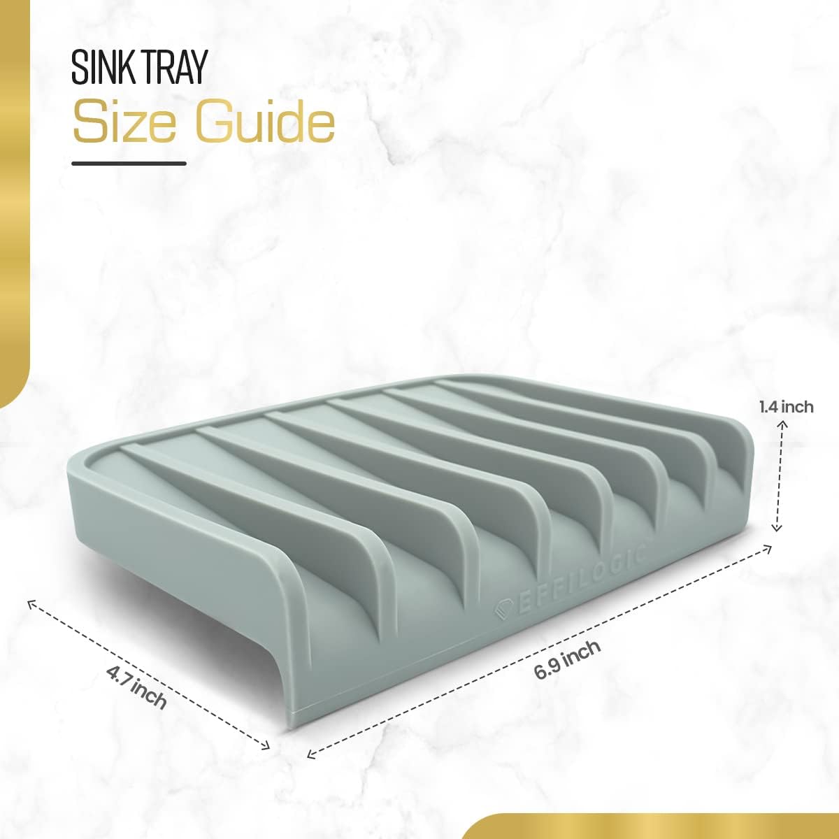 - ✅ UNIQUE WATER DRAINING DESIGN: Effilogic kitchen sink sponge holder is unique because It has a patent design with a lip and slanted floor. This draining design allows water to drain from utensils, sponges and any kitchen sink accessories automatically without collecting water. Effilogic mat protects your kitchen counter top. Great alternative for water collecting Kitchen Sink Caddy! ❗Does NOT include brush or accessories.❗
