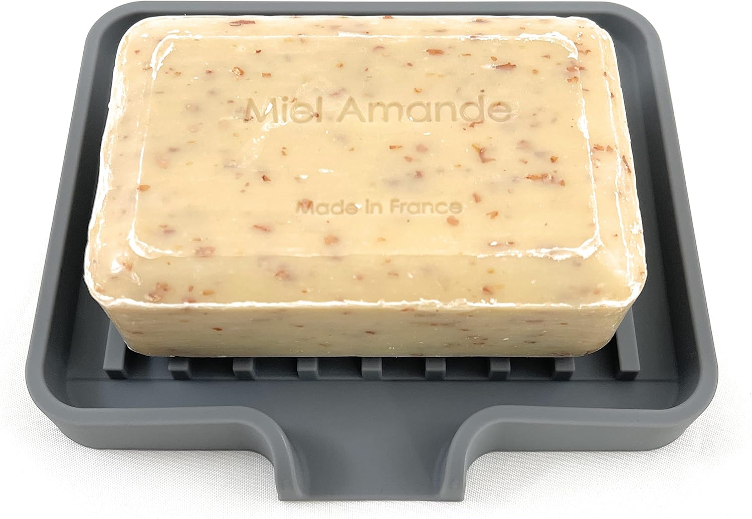 Happitasa Silicone Soap Dish Tray and Sponge Holder with Drain Chute, Pack of 2 | Bathroom and Kitchen Sink Organizer Caddy (Grey, 5.2"x4", 7.2 Ounces)