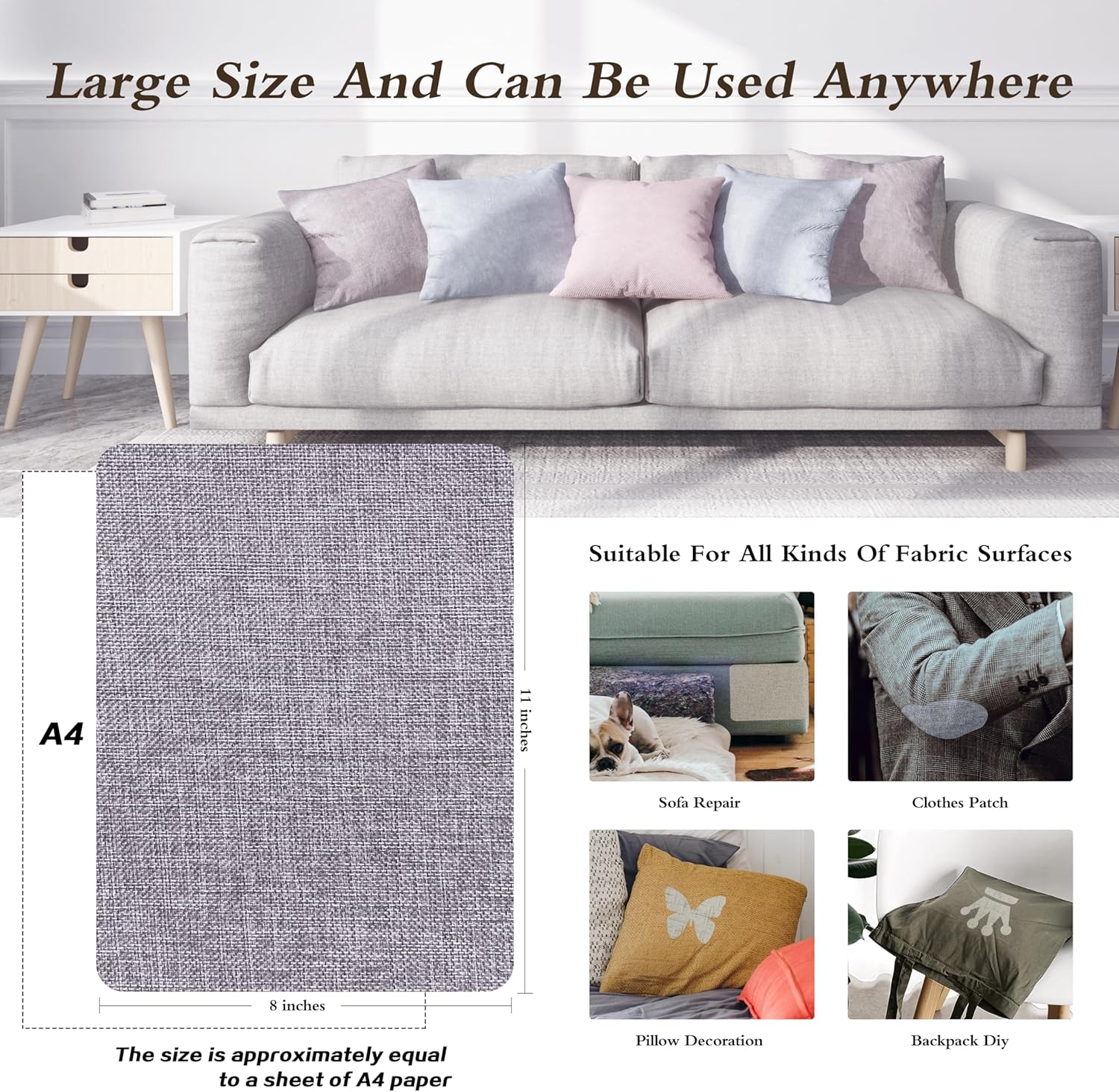 • HIGH QUALITY PRODUCTS: Coarse Linen Patch and strong adhesive. No glue residue, perfect fit in seconds. Brand new upgraded, with more glue, firmly press on the broken parts, the glue reaches the best outcome after 24 hours. Linen is durable, non-pilling, non-fading, non-shrinking and is suitable for all seasons.