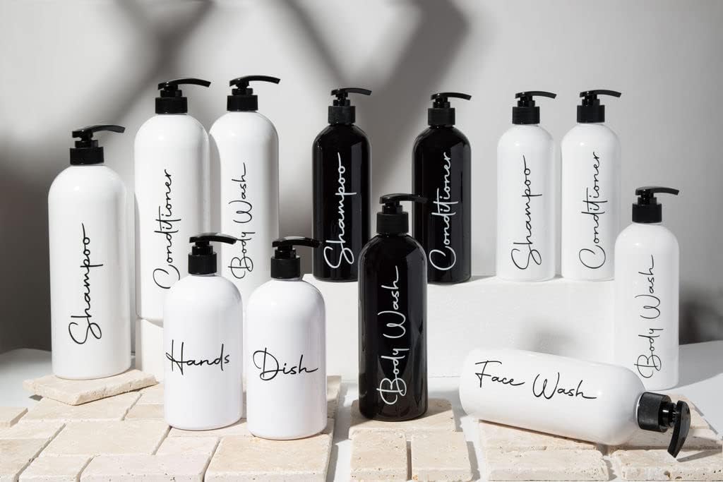 • LUXURIOUS HIGH-END STYLE APPEAL - A luxurious high-end look offsets your bathroom beautifully with elegant black script on a clean white background. Gorgeous silkscreened labels are permanent and peel-proof. Go from cramped and cluttered to soothing and spa-like.