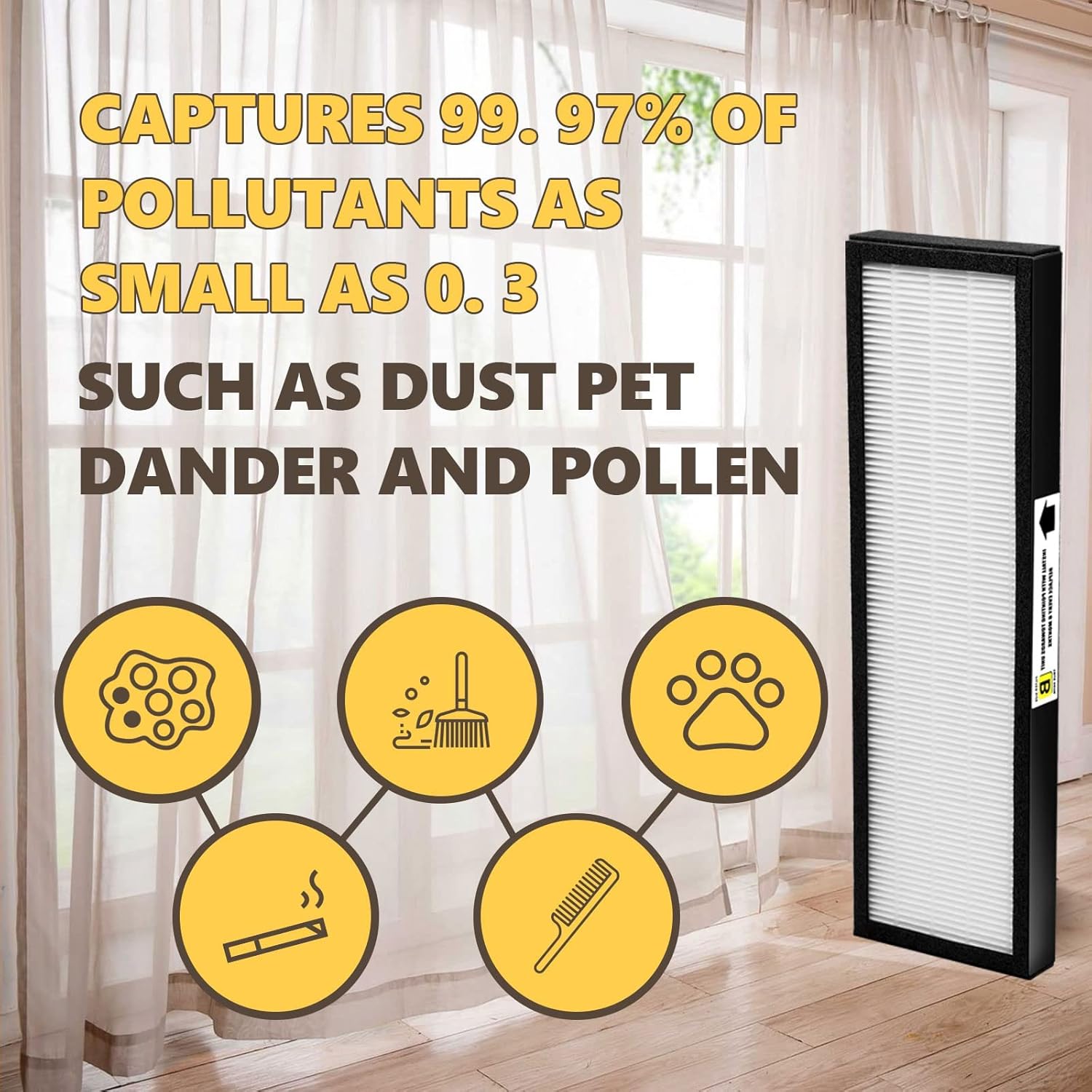 • 【High Efficiency Premium H13 HEPA Filter】 2 Premium H13 grade true HEPA material are included, captures 99% of particles down to 0.3 microns in diameter. Great Power for absorbing household odors from airbornes, such as smoke odors, pet odors, cooking odors, and VOCs.