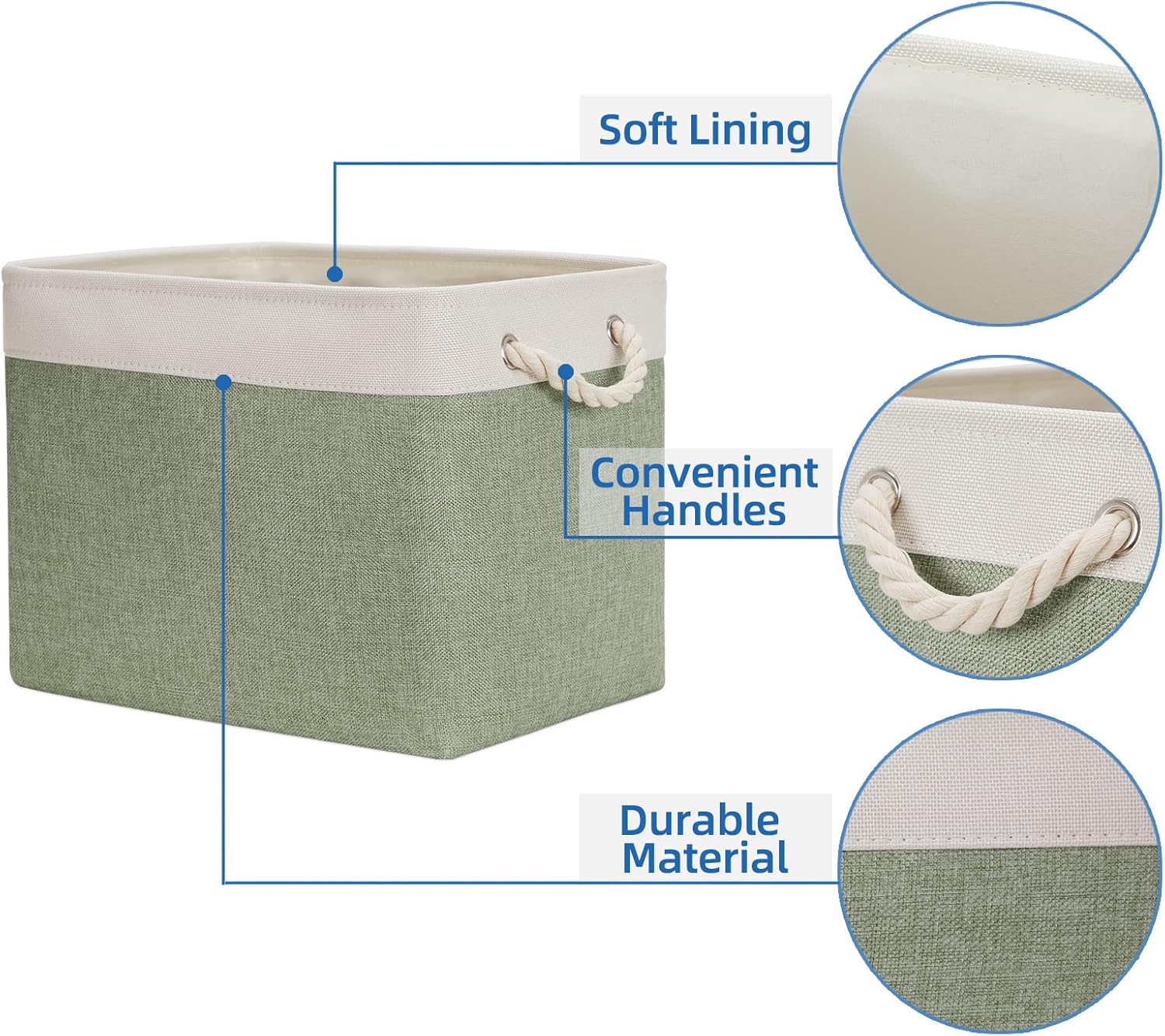 - PREMIUM QUALITY: These baskets are made of sturdy fabric&2.5mm thicken EVA, with soft interior lining. Reinforced by an upper metal supporting frame for maintaining greater structural integrity. Sturdy and high-quality material makes this large storage basket last a good long time