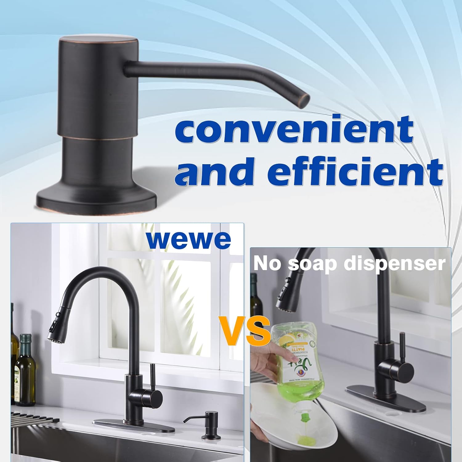 • No More Mess: Fitting a long tube kit, the oil rubbed bronze soap dispenser has 360 degree free rotation, meets different hand washing position at any time.