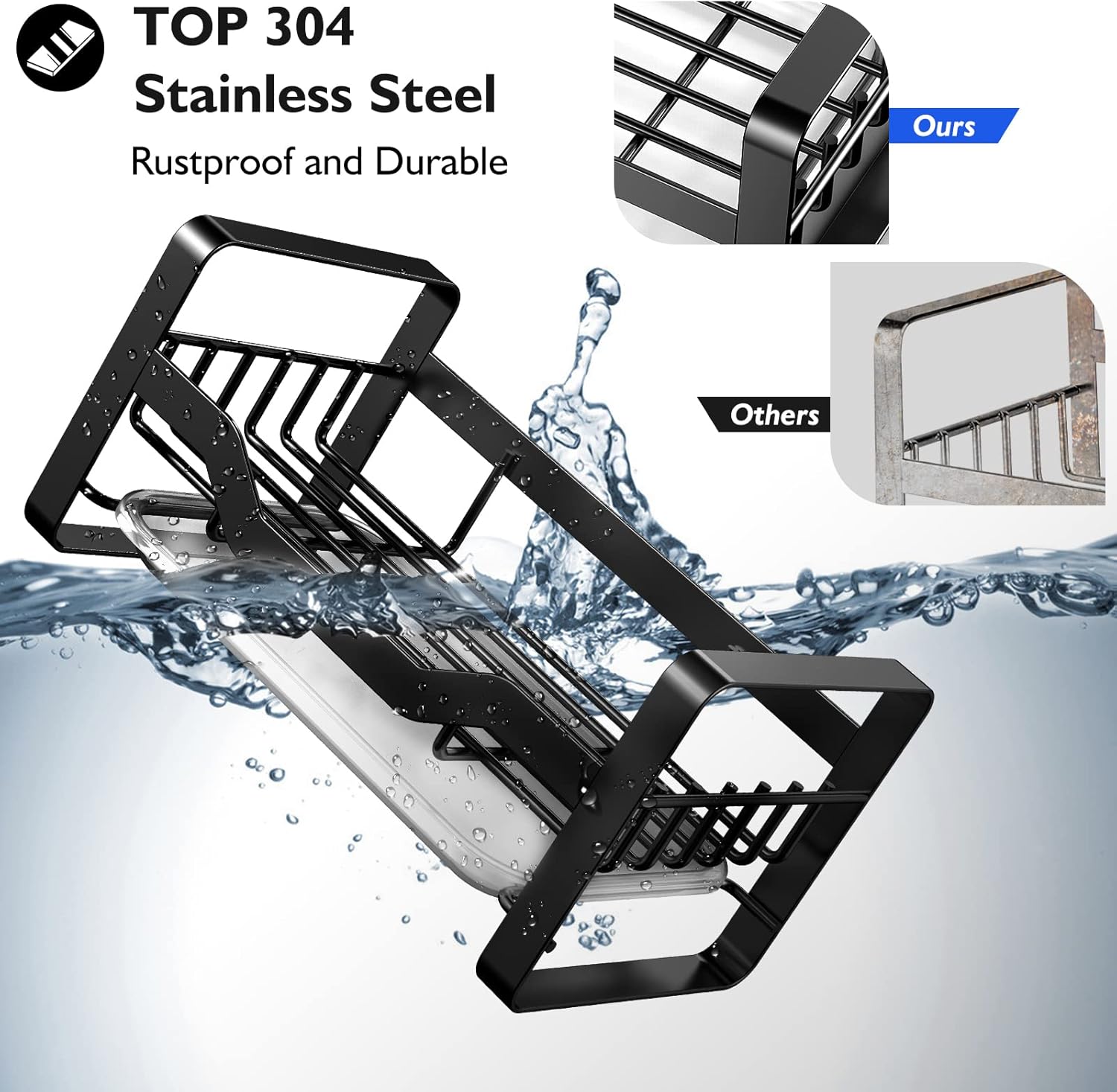 • 【Rustproof & Durable Material】This sink sponge holder frame is made of 304 stainless steel, which is waterproof, rust-proof, fingerprint-proof and durable. Better surface gloss brings better appearance.Four non-slip rubber pads are installed at the bottom to protect your desktop from scratches