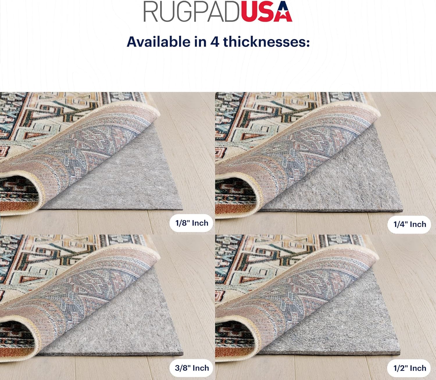 RUGPADUSA - Dual Surface - 3' Round - 3/8" Thick - Felt + Rubber - Enhanced Non-Slip Rug Pad - Adds Comfort and Protection - for Hard Surface Floors
