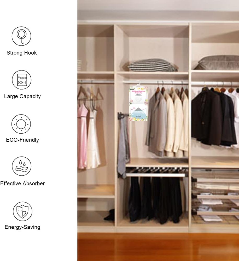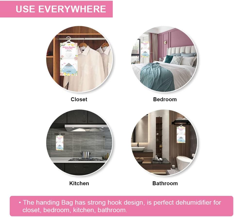 • The multi-purpose hanging bag design is very suitable for families and enclosed spaces, such as closets, laundry, boats, basements or RV closets, to solve the moisture problem in these places.