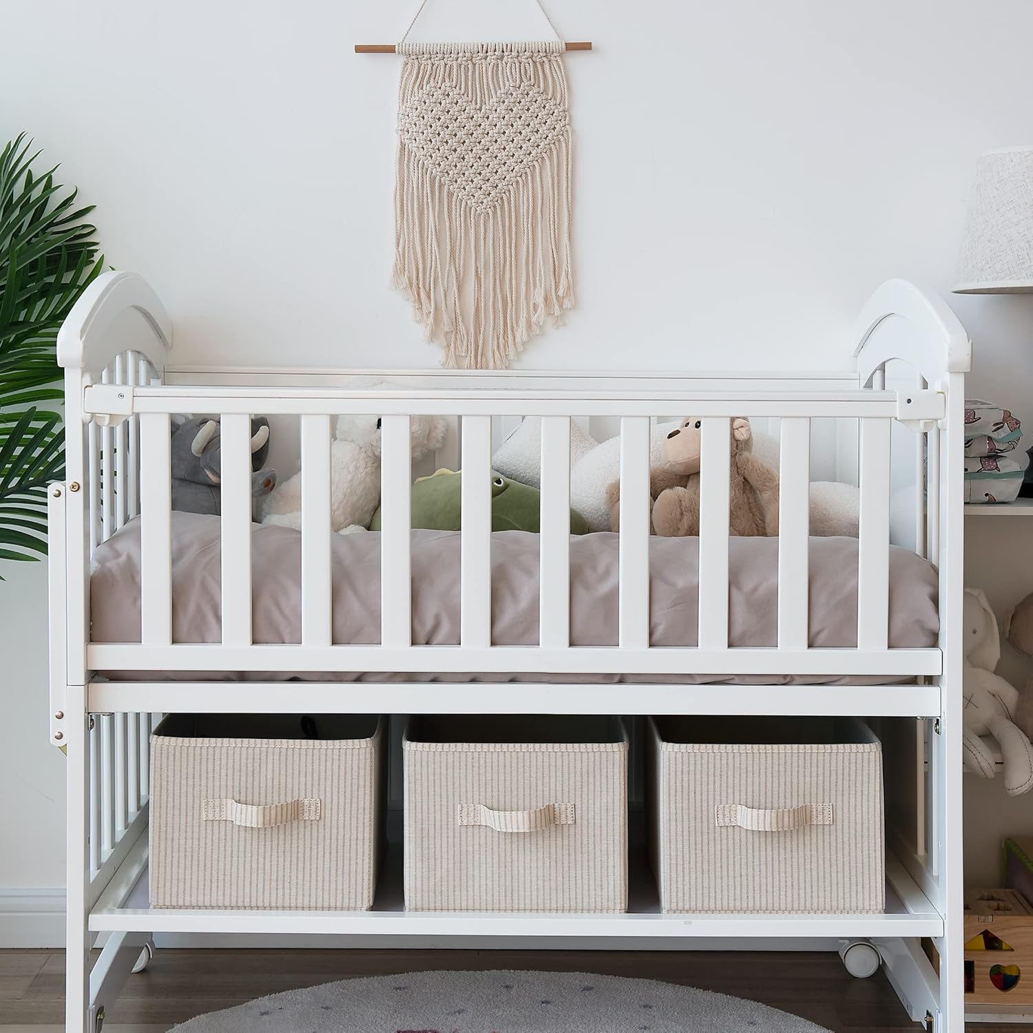 StorageWorks Storage Baskets for Shelves, Foldable Fabric Closet Storage Bins with Handles, Fabric Storage Bins Clothes Organizer, Beige Stripes, 3-Pack, Large
