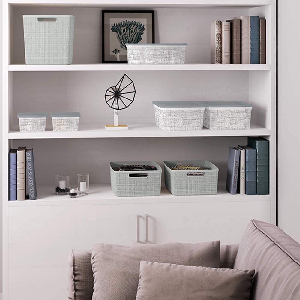 Curver Jute Decorative Plastic Organization and Storage Basket Perfect Bins for Home Office, Closet Shelves, Kitchen Pantry and All Bedroom Essentials, (Set of 6), Grey, Medium