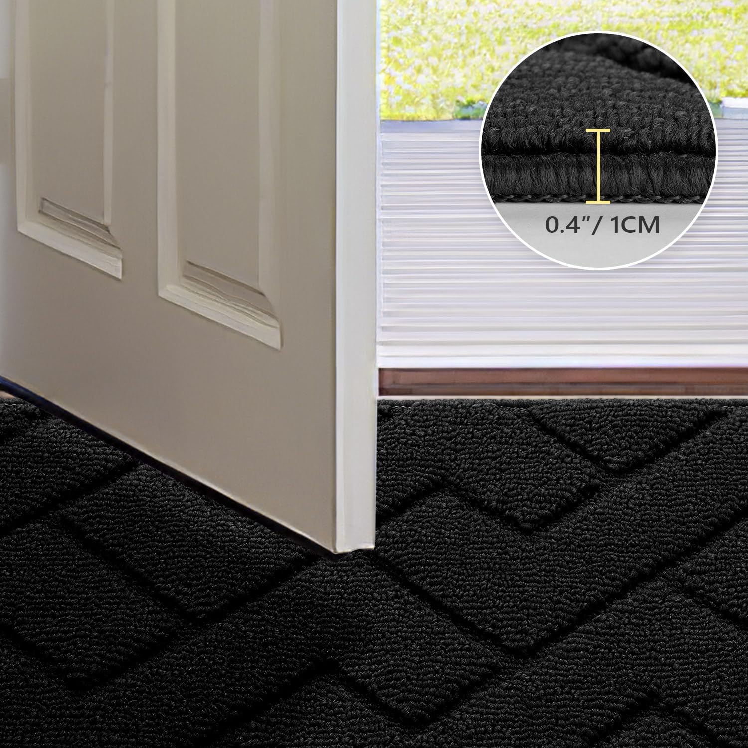hicorfe Front Door Mat Outside Entrance,36"x59" Absorbent Muddy Dirt Resist Welcome Door Mats Outdoor Indoor,Stain and Fade Resistant,Non Slip Backing Entry Mat Doormat for Entryway(Black)