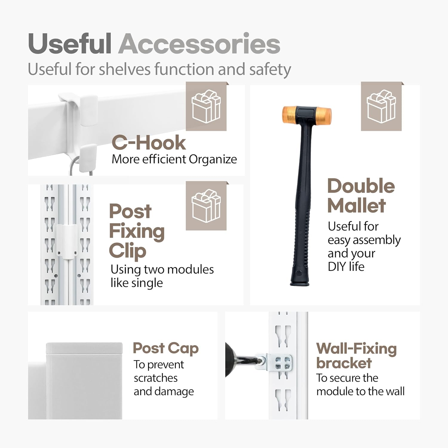 • IDEAL & PRACTICAL HOME DECORATION SHELVING - As applied posh white matte color and smooth secret hole design, it creates modernity and enhances the home interior effect. You can choose the wood pattern board that can use both sides (Wood Grain or White Pattern) freely to suit the mood of your home by turning upside down easily. It is made of thick Eco-friendly overlaid coating boards, so you don't need to paint them to avoid moisture or use shelf liner to prevent falling out.