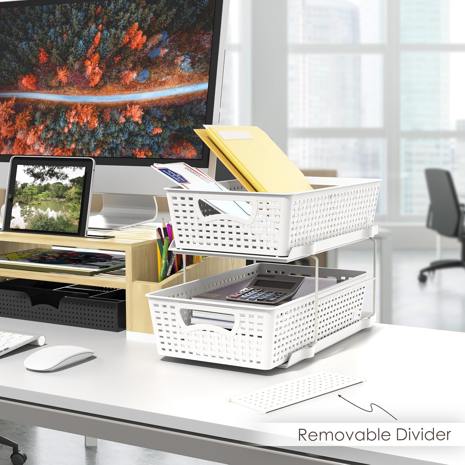 Simple Houseware 2 Tier Bathroom Organizer Tray Pull-Out Sliding Drawer/Under-Sink Storage, White