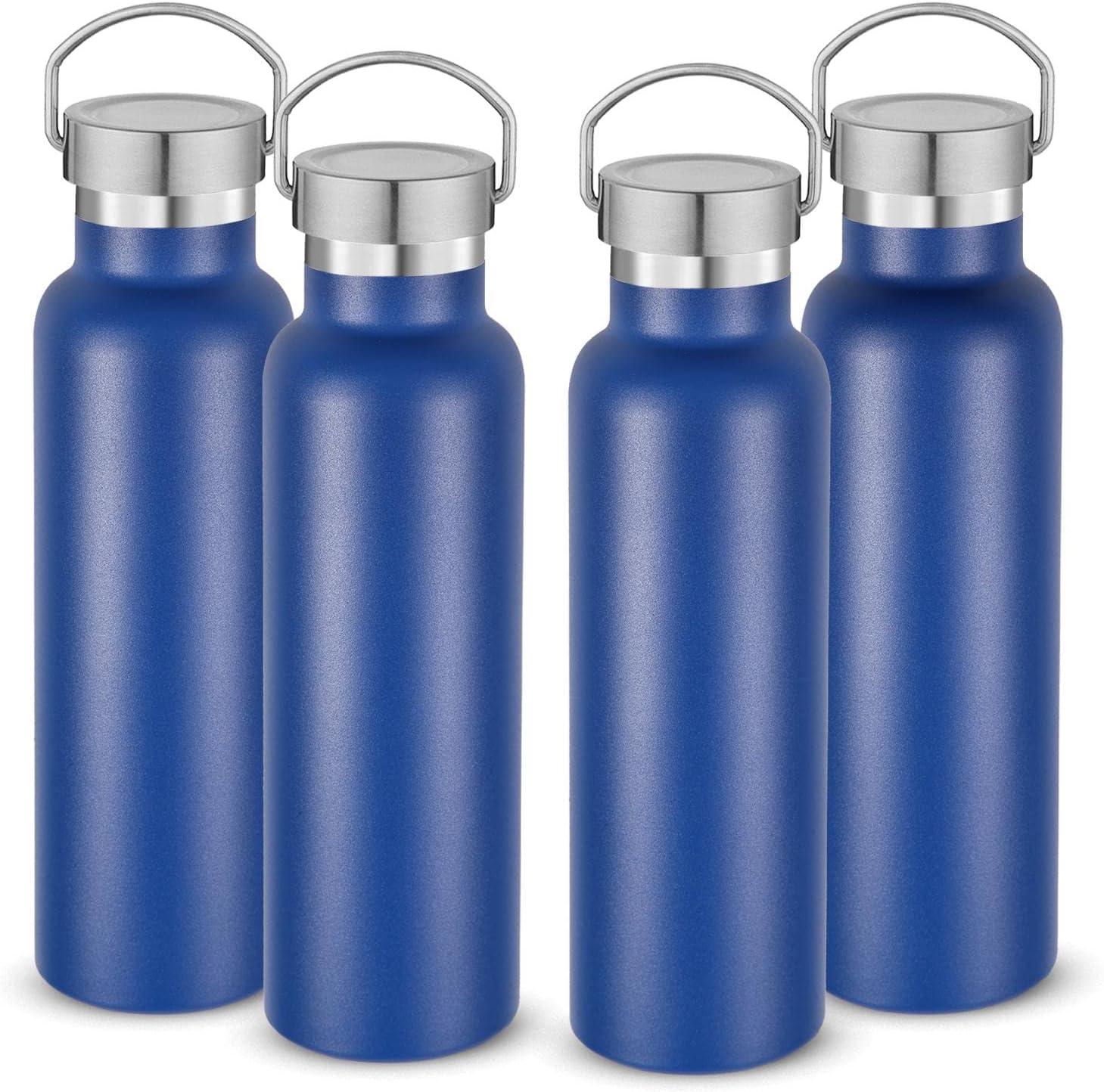 Neihepal 20 oz Insulated Water Bottles Bulk 4 Pack,Stainless Steel Double Wall Sport Bottle with Lid of Handle,Metal Reusable Thermoses Flask with Cup Cap for School,Hikers,Gift (Navy,Set of 4)