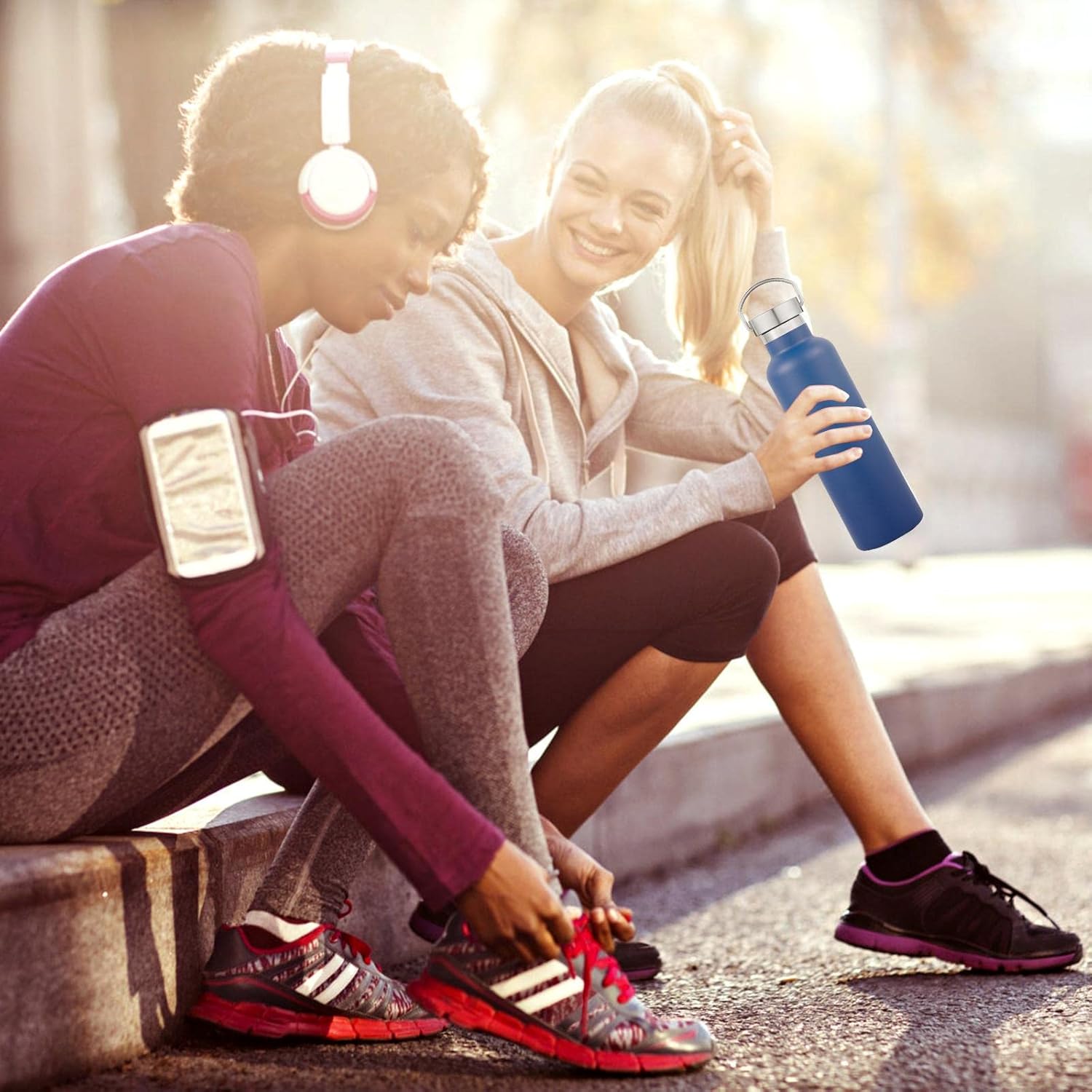 - PERFECT SIZE AND KEEP WARM FOR A LONG TIME: Our double wall insulation bottle protects temperature for up to 12 hours . The 20 oz stainless steel water bottle is perfect for everyday use and the cups fit on the bike cup holder and inside the backpack for your hiking, biking, beach, camping and fitness