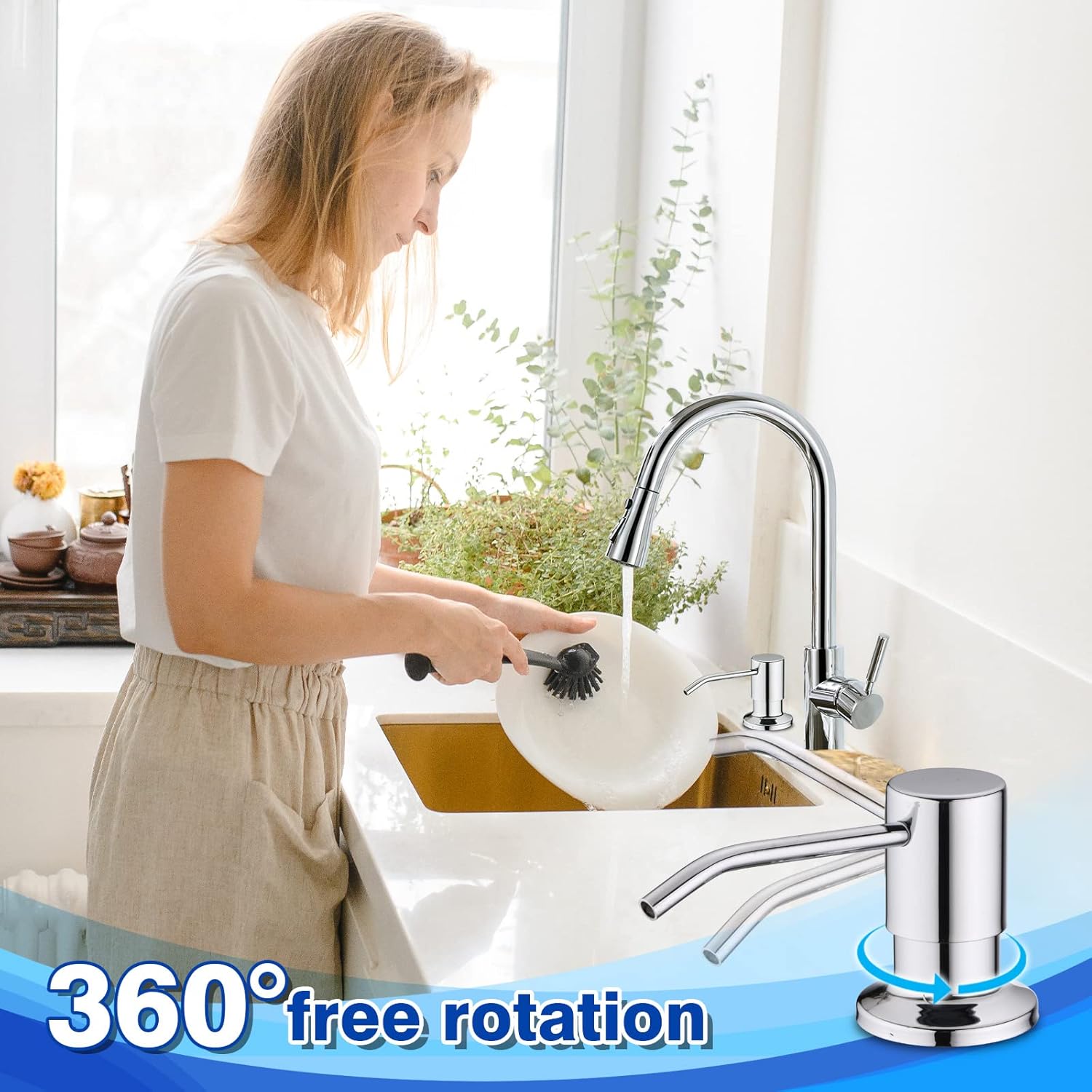 • 【Solid and Durable】Your chrome soap dispenser for kitchen sink is made with exterior commercial grade 304 stainless steel and interior durable PE plastic for higher durability and reliability. The premium polished chrome finish makes it resistant to corrosion and rust.