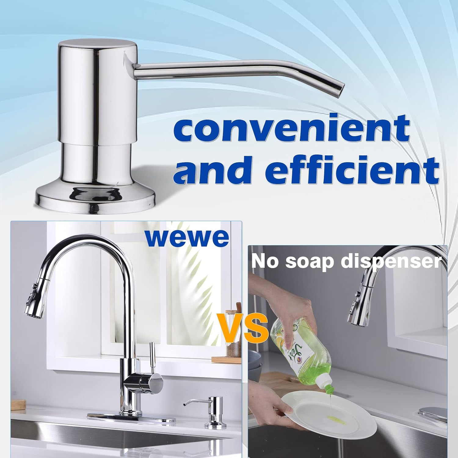 Chrome Soap Dispenser for Kitchen Sink, WEWE Kitchen Sink Soap Dispenser Built in for Counter Top Refillable Under Sink in Sink Soap Dispenser Stainless Steel Polished Chrome