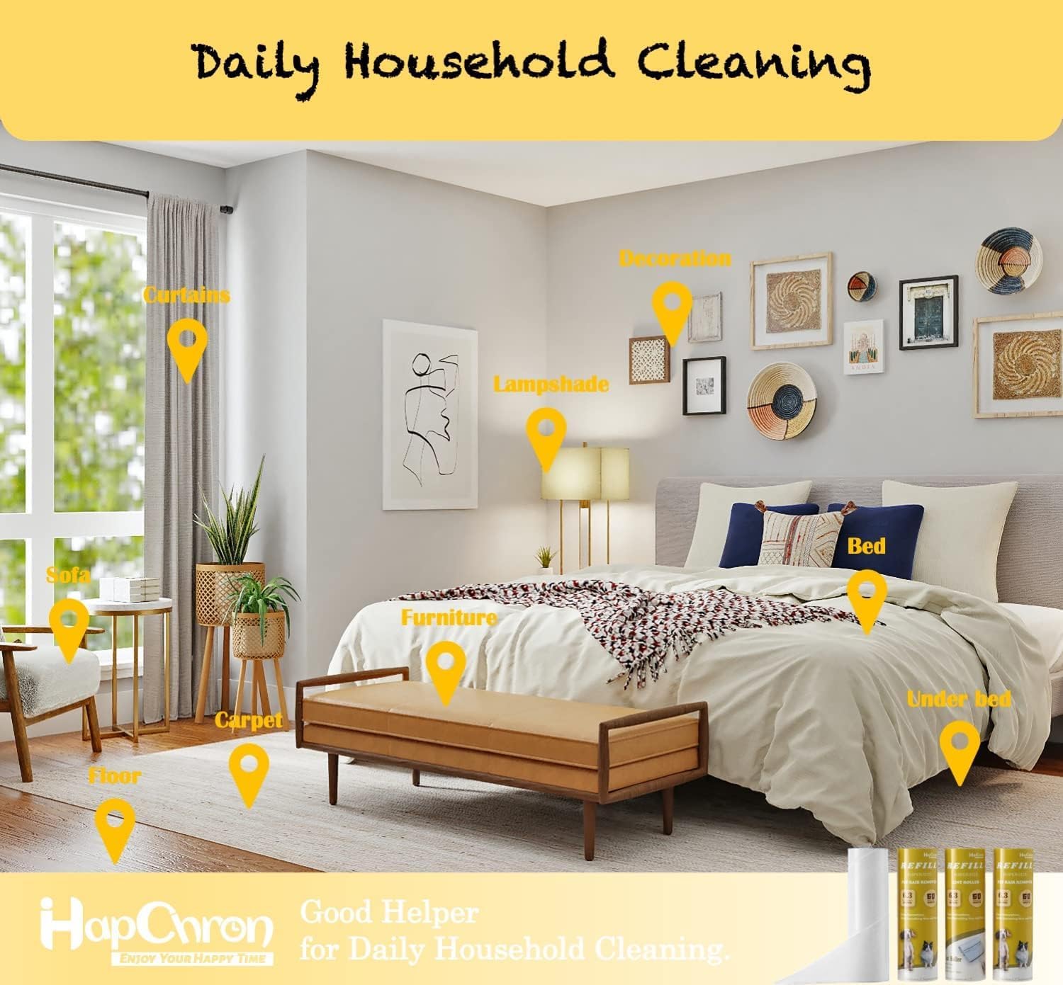 - ๐ EVERYDAY CLEAN: Multifunctional intuitive design combined with ease of use makes this lint roller an ALL-IN-ONE household lint roller easily applicable to a variety of scenarios. In addition,the lint remover comes with a free hook, which can be hung in the room, living room, cloakroom, and is very convenient for storage. To extend the use of this heavy duty lint roller, use HapChron 6.3" Supersize Lint Roller Refills.