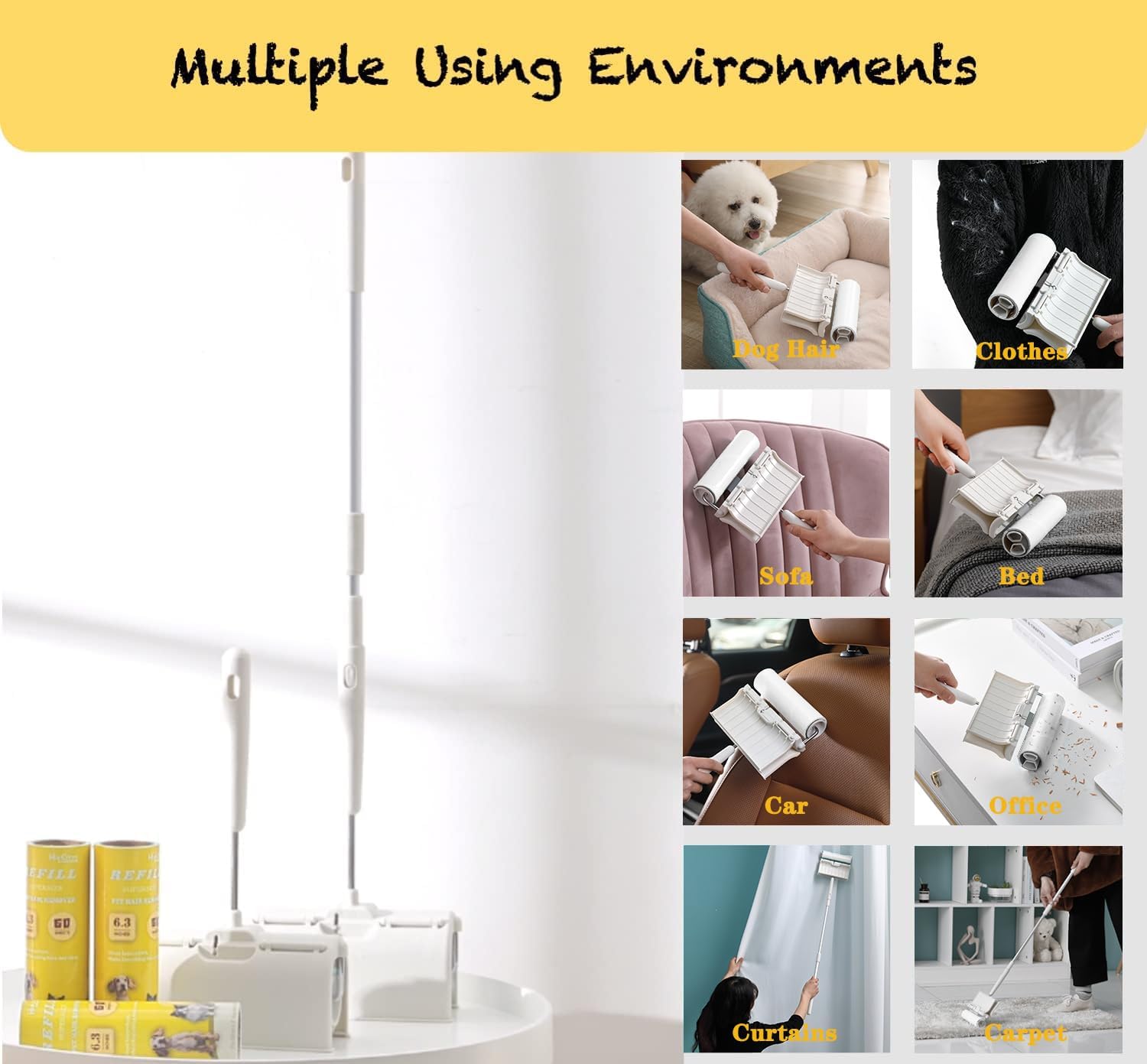 - ๐ LARGE SURFACE, CLEAN MORE QUICKLY AND EFFICIENTLY: Large surface lint roller will serve as a perfect assistant in your home, office and car. Supersize 6.3'' lint roller with Easy Flip Cover consists of 4 Refills, total 240 sticky Sheets. It is extremely easy and effective for all surfaces; clothes, furniture, sofa, carpet, bed, curtains, hardwood floor etc. This large lint roller can remove cat/dog hair, lint crumbs, food debris, dust, glass slag and so on.