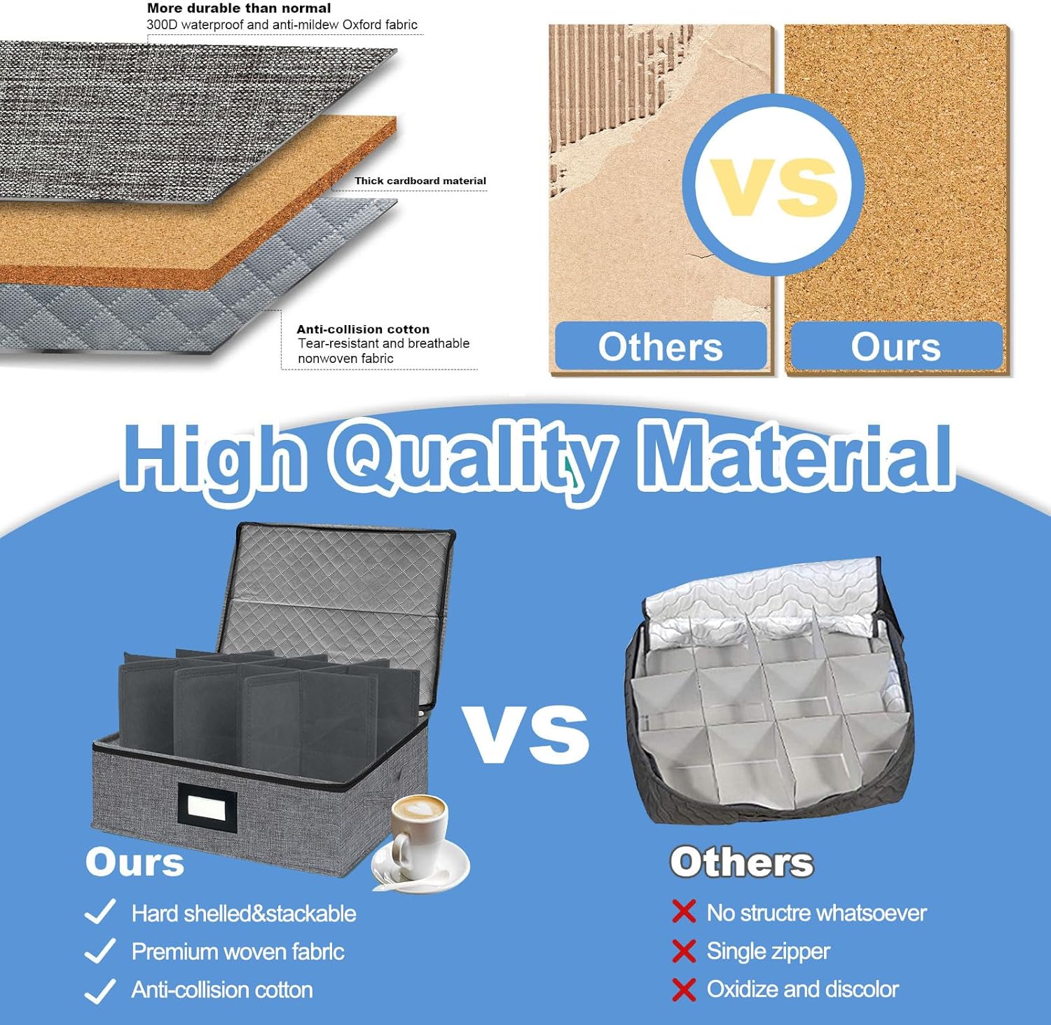 • ๐Ÿฅ›[Perfect Design] - The mug storage box holds 12 Coffee Mugs and Tea Cups, and measures 16.5x13x6inches. Each china storage box comes with a label holder for easy identification of the contents.