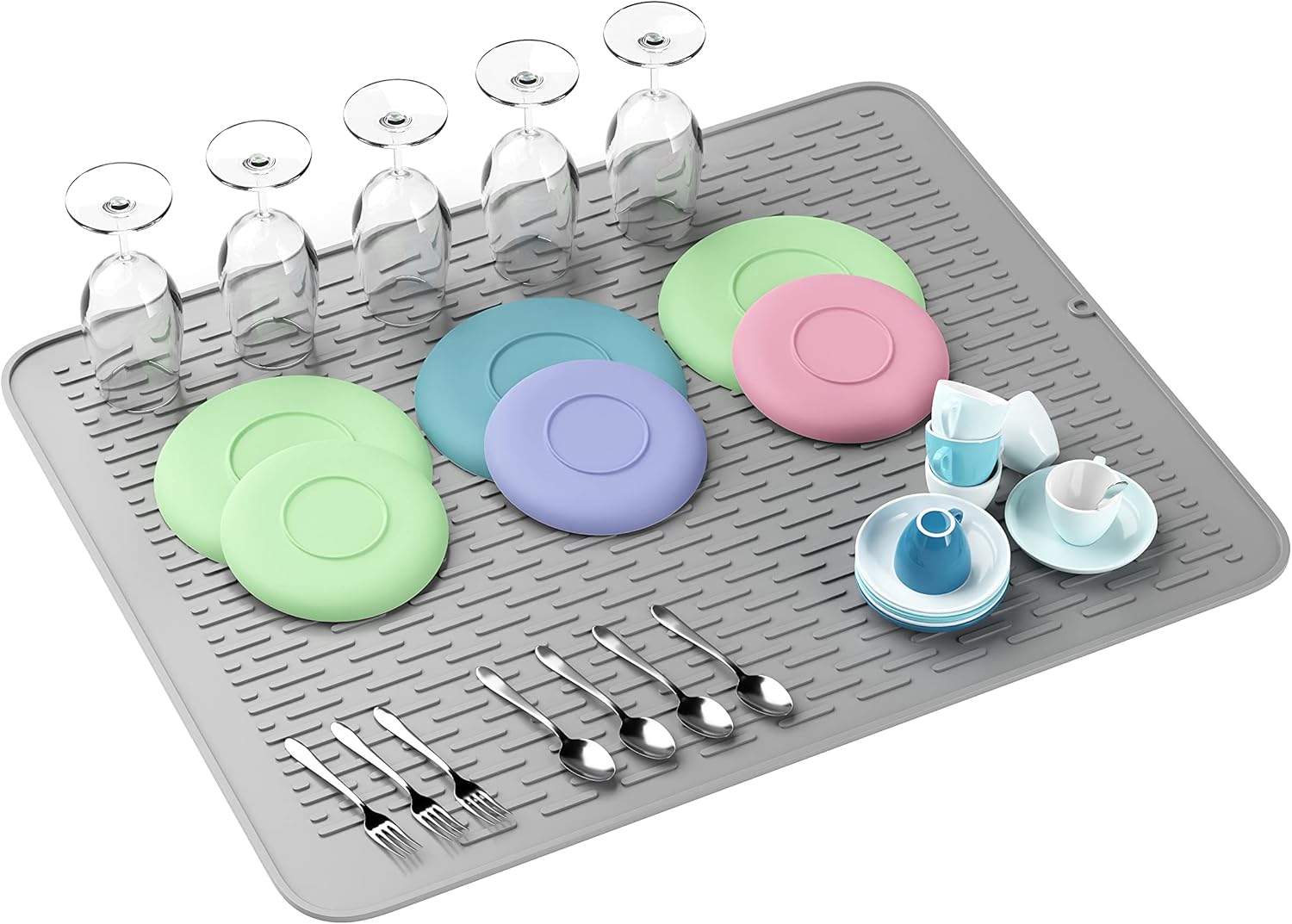 • Quick-Drying Technology: Extra Large drying mat silicone material helps reduce moisture buildup and dries your dishes quicker, keeping your kitchen counters neat and dry.