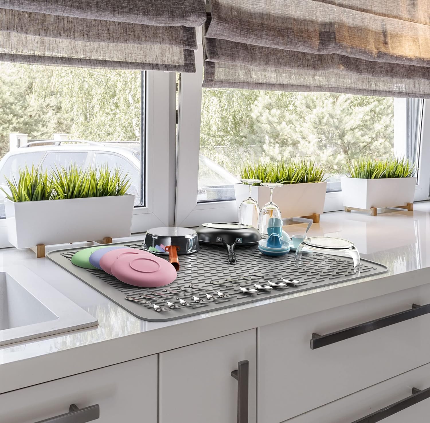 • Heat-Resistant & Multi-Functional: Use as a heat-resistant drying mat for hot cookware straight from the stove or oven. Our large drying mat versatile design makes it suitable for various kitchen tasks.