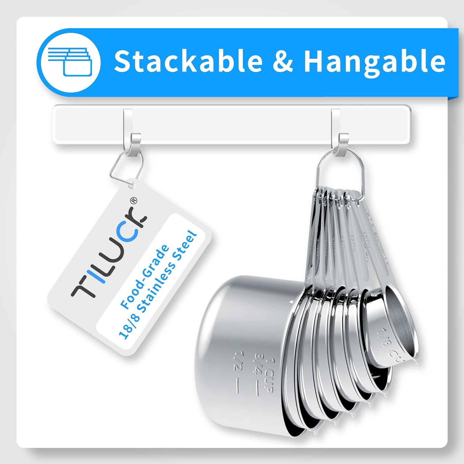• [Premium Material]: The measuring cups made of Food-Grade 18/8 Stainless Steel. The measuring spoon made of premium Food-Grade Stainless Steel.100% rust-resistant, no toxic elements, which is safe to use for both dry and wet ingredients