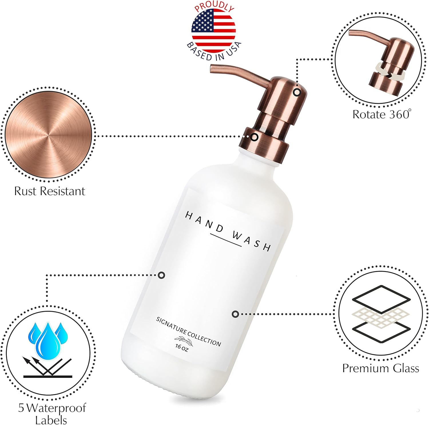 - ✅ 2-in-1 COMBO: Upgrade your home with our glass soap dispenser set. The dish soap dispensers are crafted from the highest quality glass and can be used as soap dispensers for kitchen sinks, soap dispensers for bathrooms, or as hand soap dispenser of your favorite liquid. The kitchen soap dispensers come with 2 dish soap dispensers for kitchen bottles (16 ounces), 2 stainless steel pumps, and 5 waterproof labels. Our selection includes colors including amber, clear, white, and black.