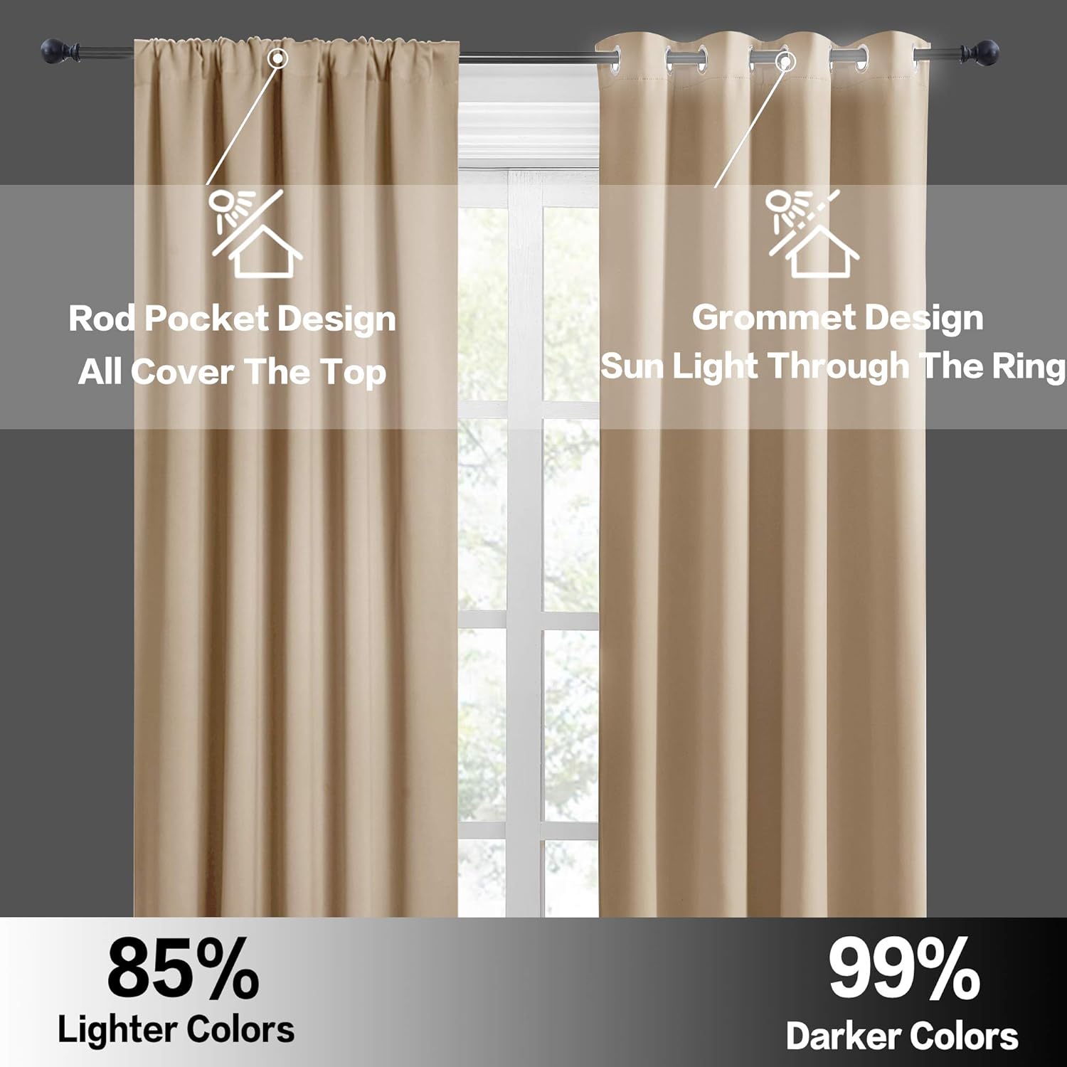 • LIGHT BLOCKING - Curtains block 85-95% sunlight and UV rays (Dark color works better) for maximum privacy and undisturbed sleep. Thermal property of the blackout curtains ensure that the room temperature is regulated. Protect your indoor furniture from directly exposing to the sun.