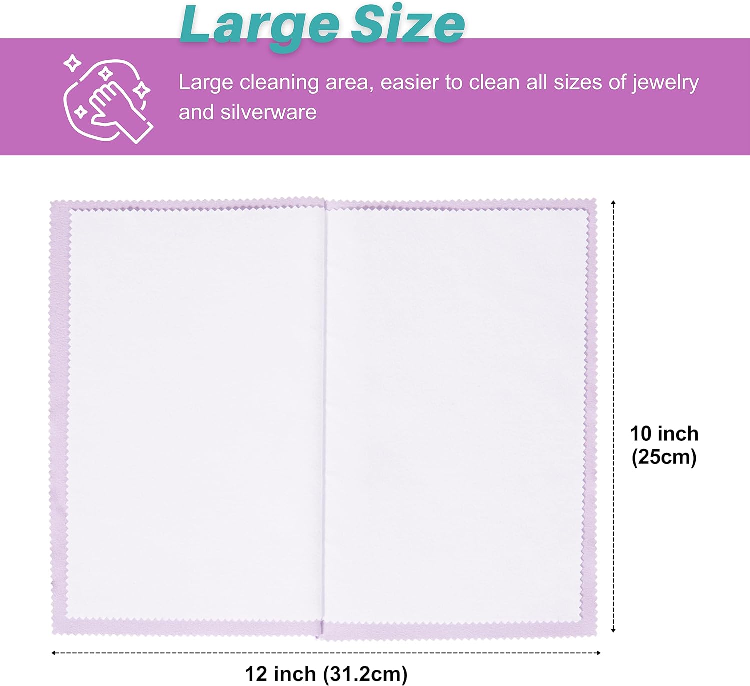 • LARGE SIZE: Each polishing cloth has an unfolded size of 10 inches X 12 inches (25cm X 31.2cm). The large jewelry cleaning cloth is easier to grip and easier to clean silverware and jewelry of different sizes.
