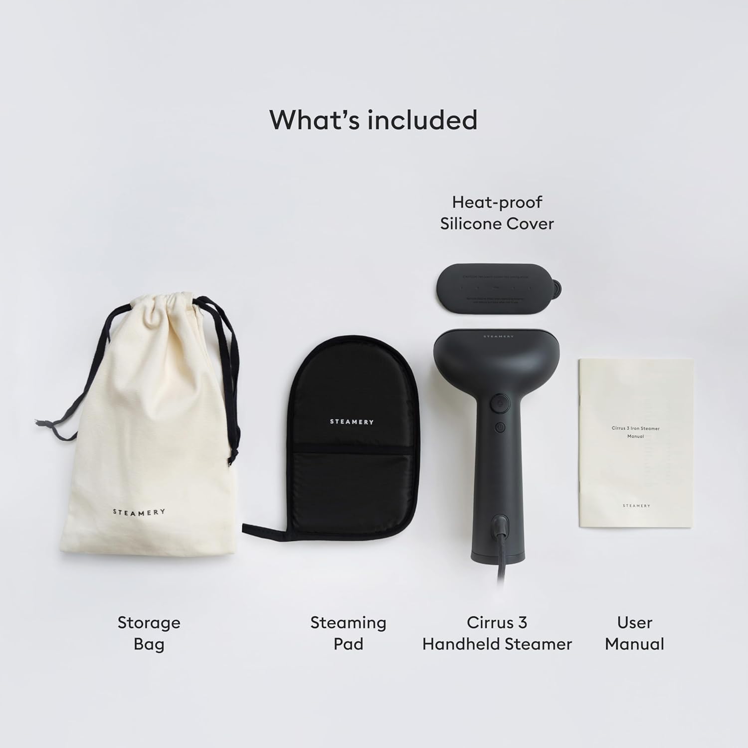 Steamery Handheld Clothes Steamer Cirrus 3, 1200W, US Plug, Heated Ironing Plate, Fast Heat Up, Garment Wrinkle Remover, Black