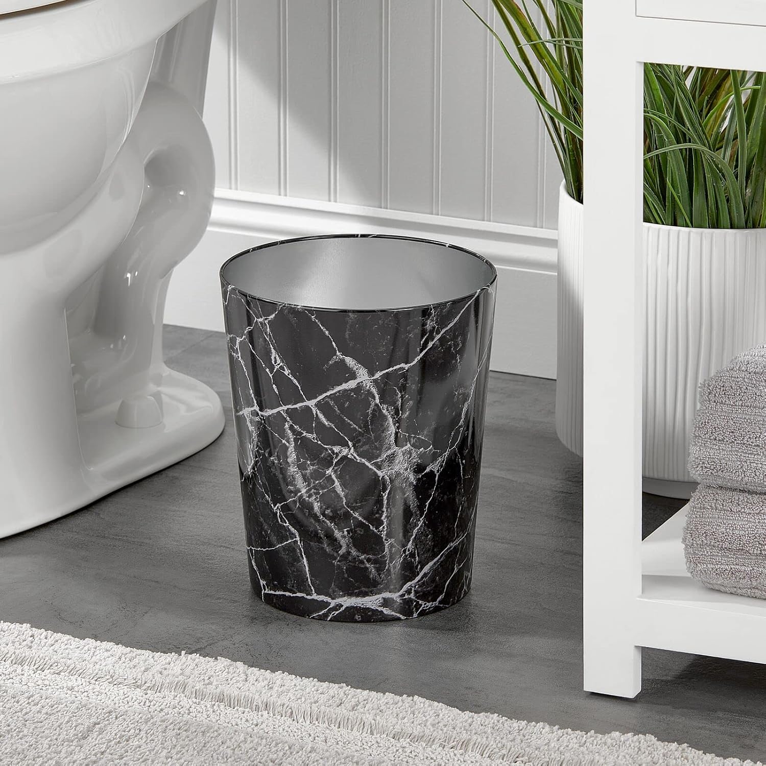 mDesign Round Metal Small 1.7 Gallon Recycle Trash Can Wastebasket, Garbage Container Bin for Bathrooms, Kitchen, Bedroom, Home Office - Durable Stainless Steel - Mirri Collection - Black Marble