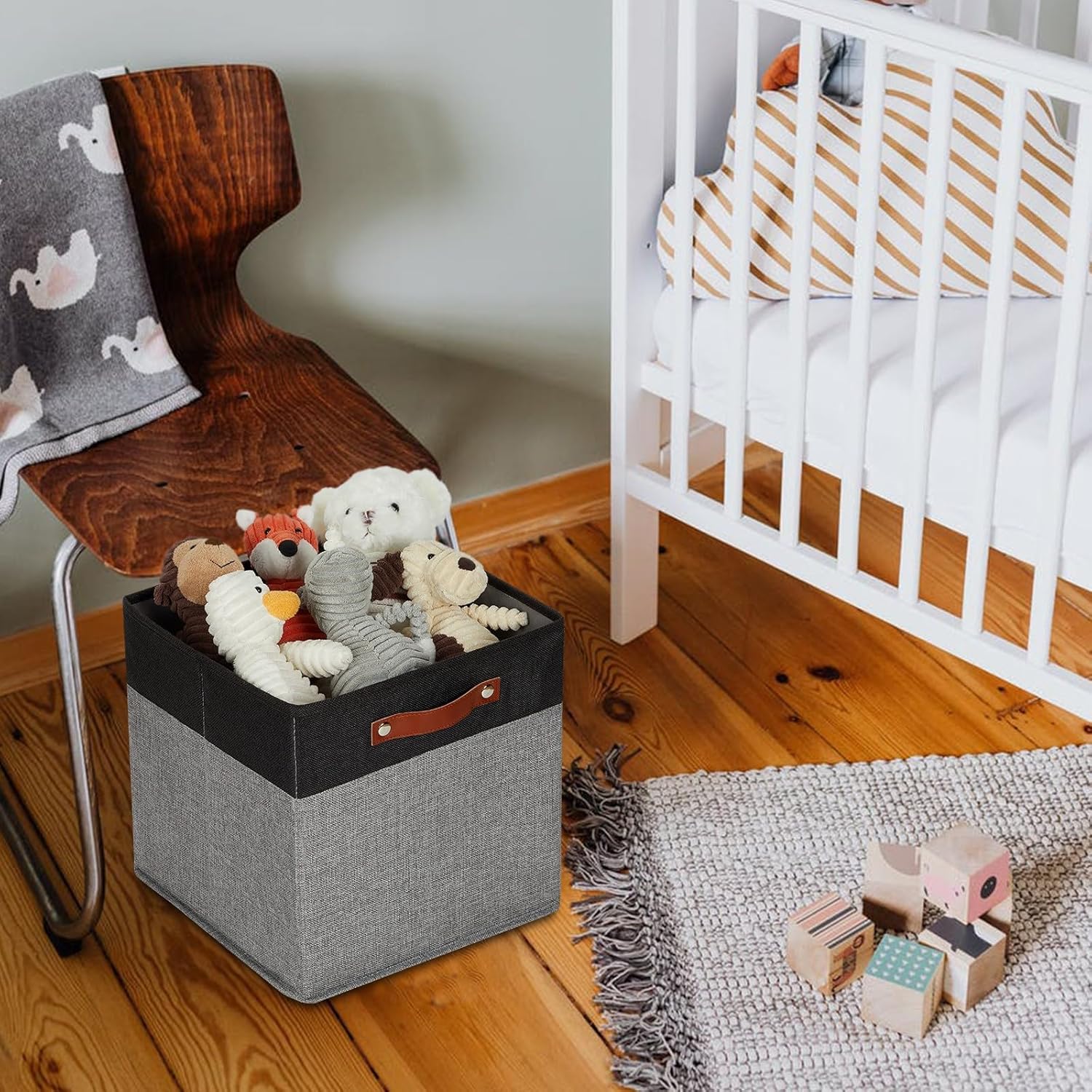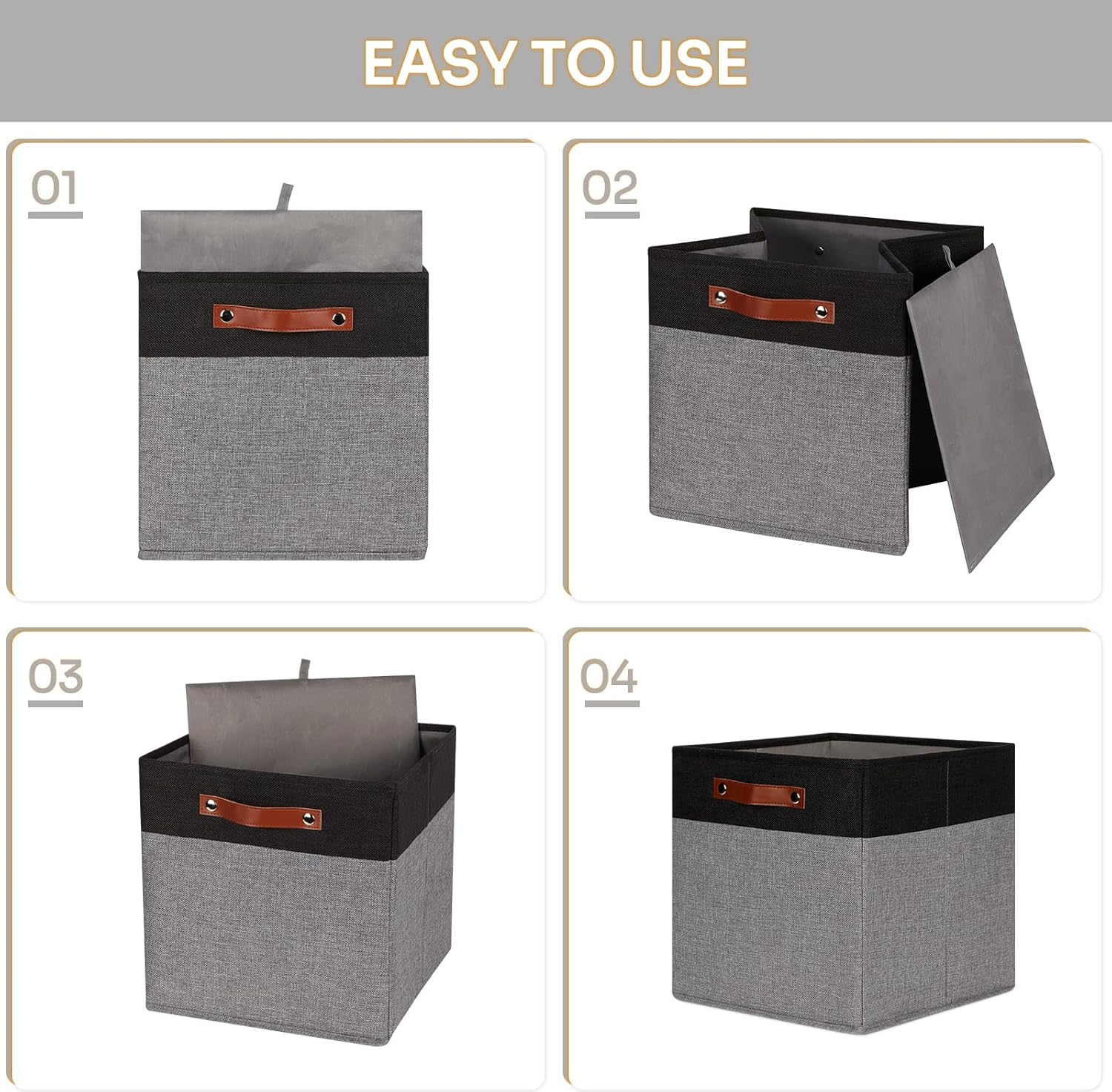 HNZIGE Storage Baskets for Organizing, Set of 4, Square Fabric Storage Cubes Bins 13 x 13, Collapsible Black Storage Bins for Shelves, Closets, Nursery, Home, Office (Black&Grey)