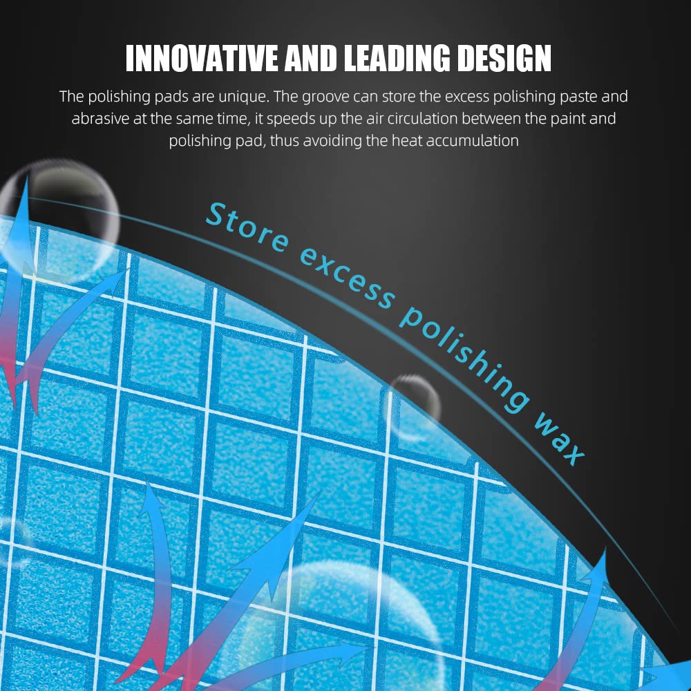 • [Innovative design] The groove can store excess polishing paste and abrasives; at the same time, it speeds up the air circulation between the paint and the polishing pad and avoids the accumulation of heat;