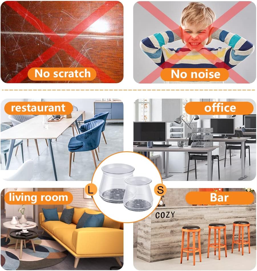 • 【Integrated Silicone + Felt Design】Our upgraded rubber silicone chair leg cover is equipped with a felt pad. We combine the felt and silicone into an integral part, ensuring the felt pad stays firmly in place during use.