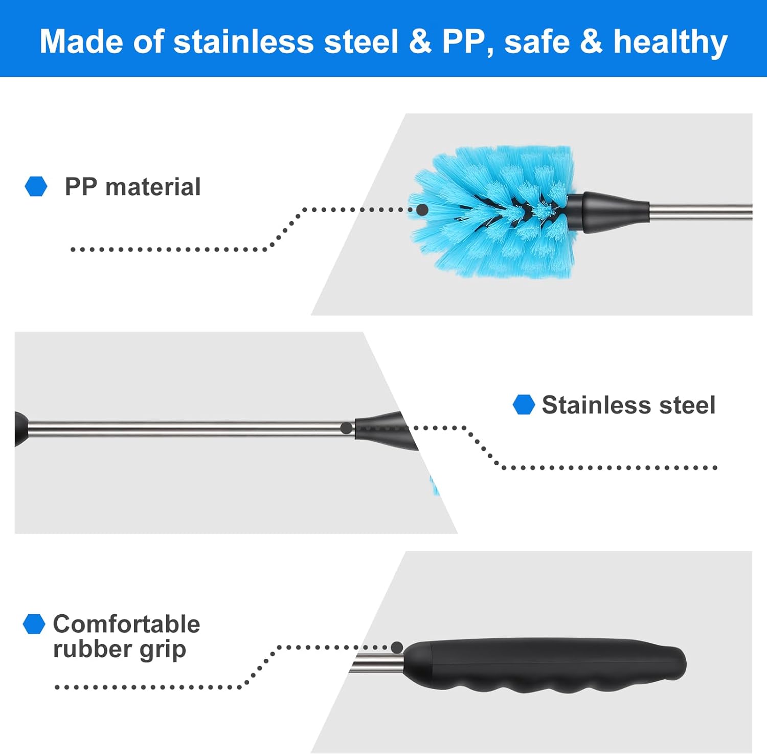 • The water bottle cleaning brush is made of premium stainless steel and high-quality nylon material, which is comfortable and flexible, odorless and safe, and won't leave scratches on your water bottle.
