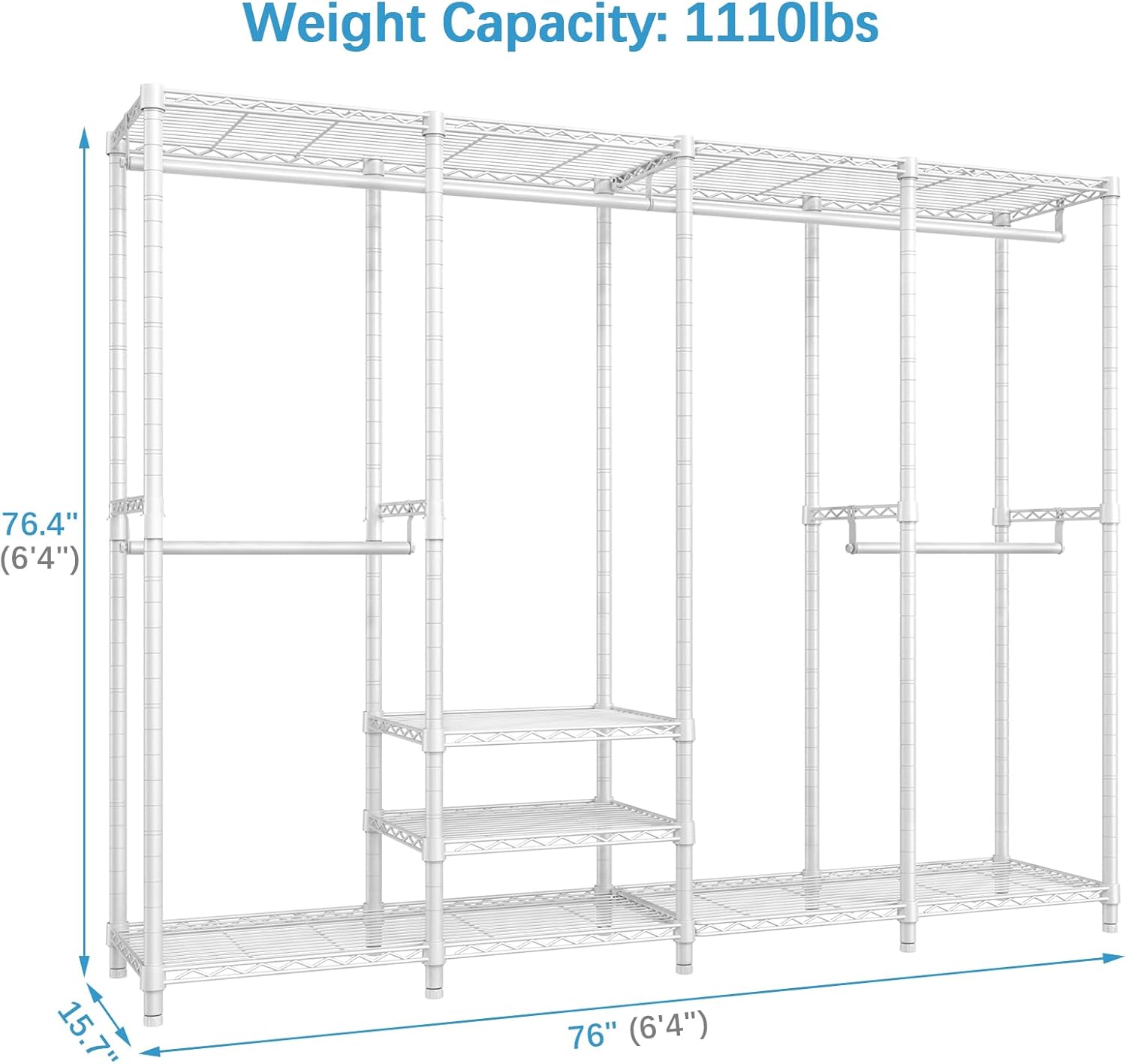 VIPEK V40 Wire Garment Rack Heavy Duty Clothes Racks for Hanging Clothes, Multi-Functional Bedroom Clothing Racks Freestanding Closet Wardrobe Rack, 76" L x 15.7" W x 76.4" H, Max Load 1110lbs, White