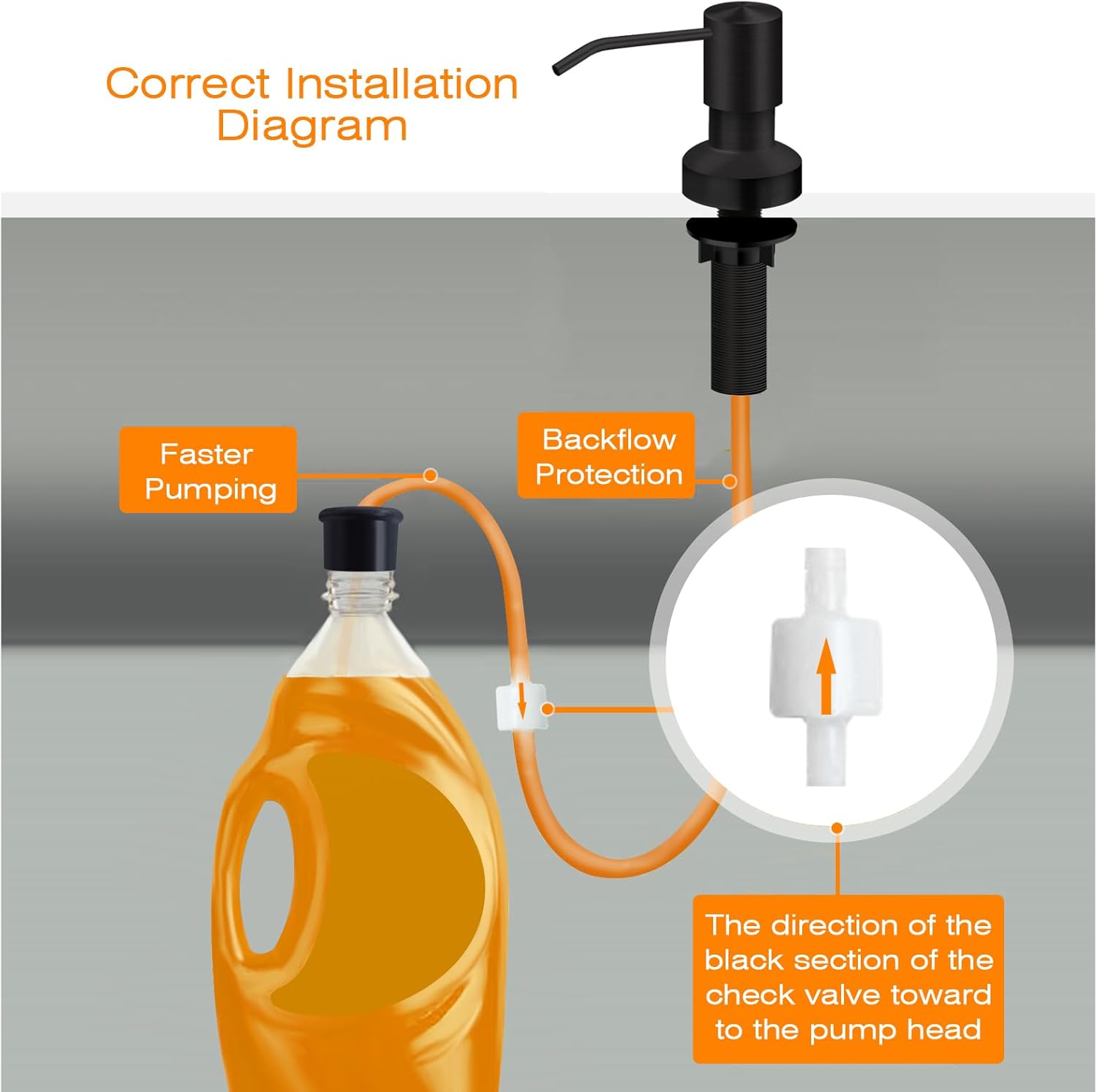 • What You Get: One soap dispenser pump head, 2 tubes, one bottle stopper to fit all soap containers, a check valve connects two-tube, anti-leak accessories and 3 fastening bolts.