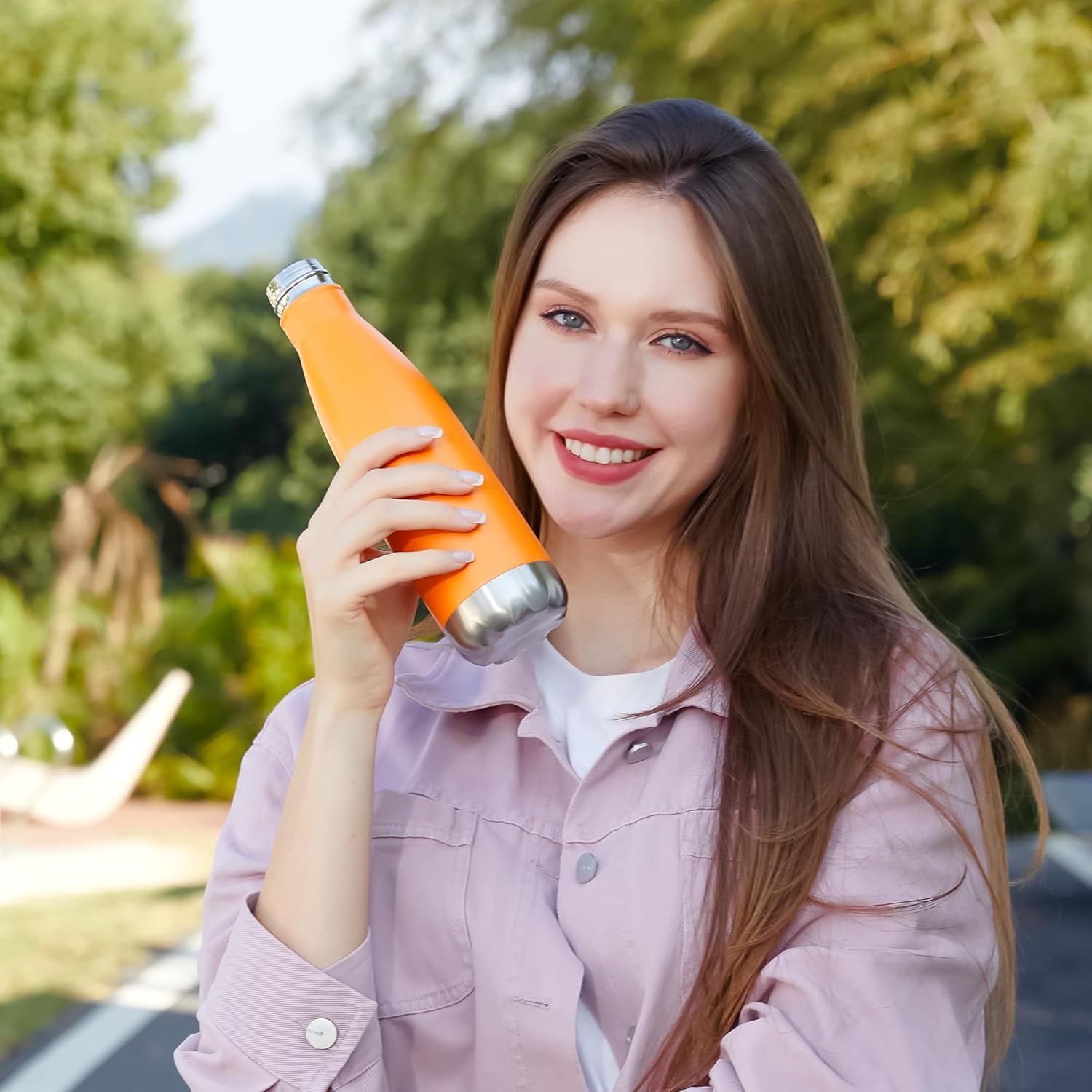 MEWAY 17oz Sport Water Bottle 8 Pack Vacuum Insulated Stainless Steel Leak-Proof Double Wall Cola Shape Water Bottle,Keep Drinks Hot & Cold (Orange,8 Pack)