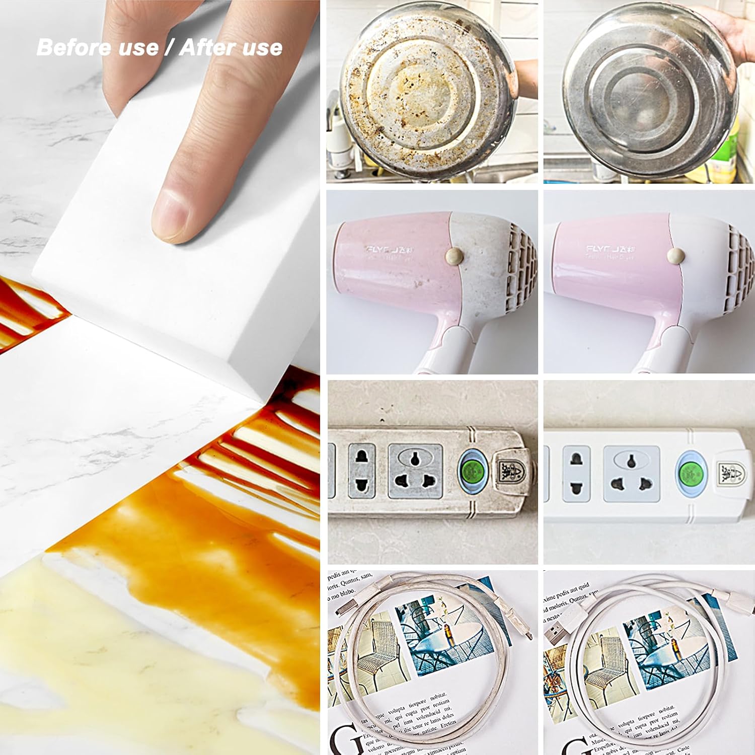 - 🧽Not Easy to Crumble: High-quality melamine sponge has extra density and resistance to break. Efface in one direction can effectively extend the life of the melamine foam sponges.