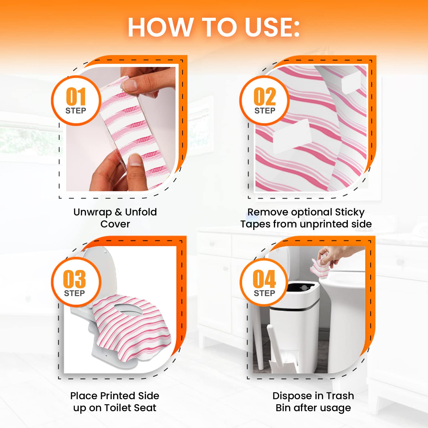 • INDIVIDUALLY WRAPPED FOR TRAVEL: This Pack of 20 disposable toilet seat covers for travel Potty features convenient single-liner packaging for on the go potty for toddler training in public restroom, Bathroom & Camping