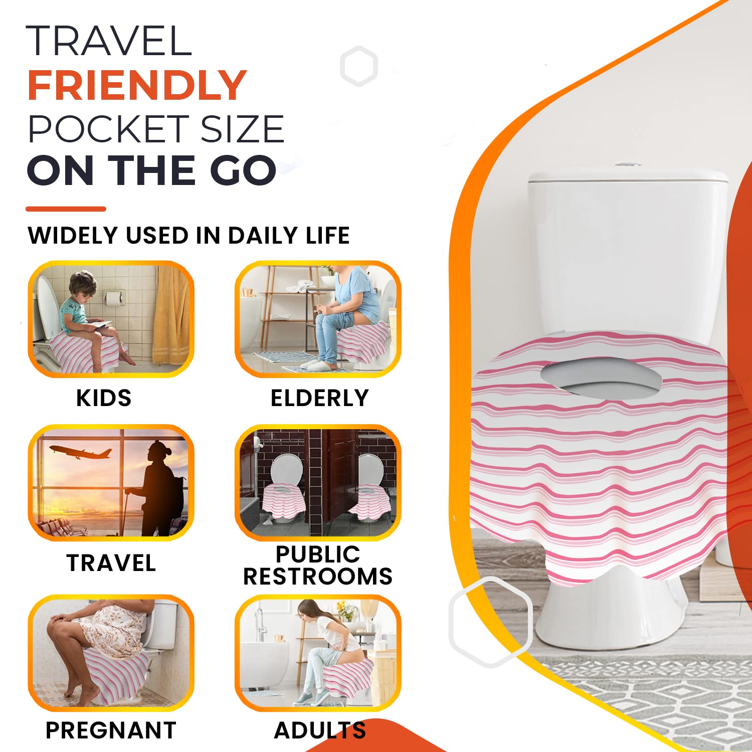 20 Extra Large Toilet Seat Covers Disposable for Kids & Adults-Toilet Covers Disposable for travel-Toddler Toilet Seat Cover Liners for Potty Training-Individually Wrapped-Waterproof (Pink Waves)