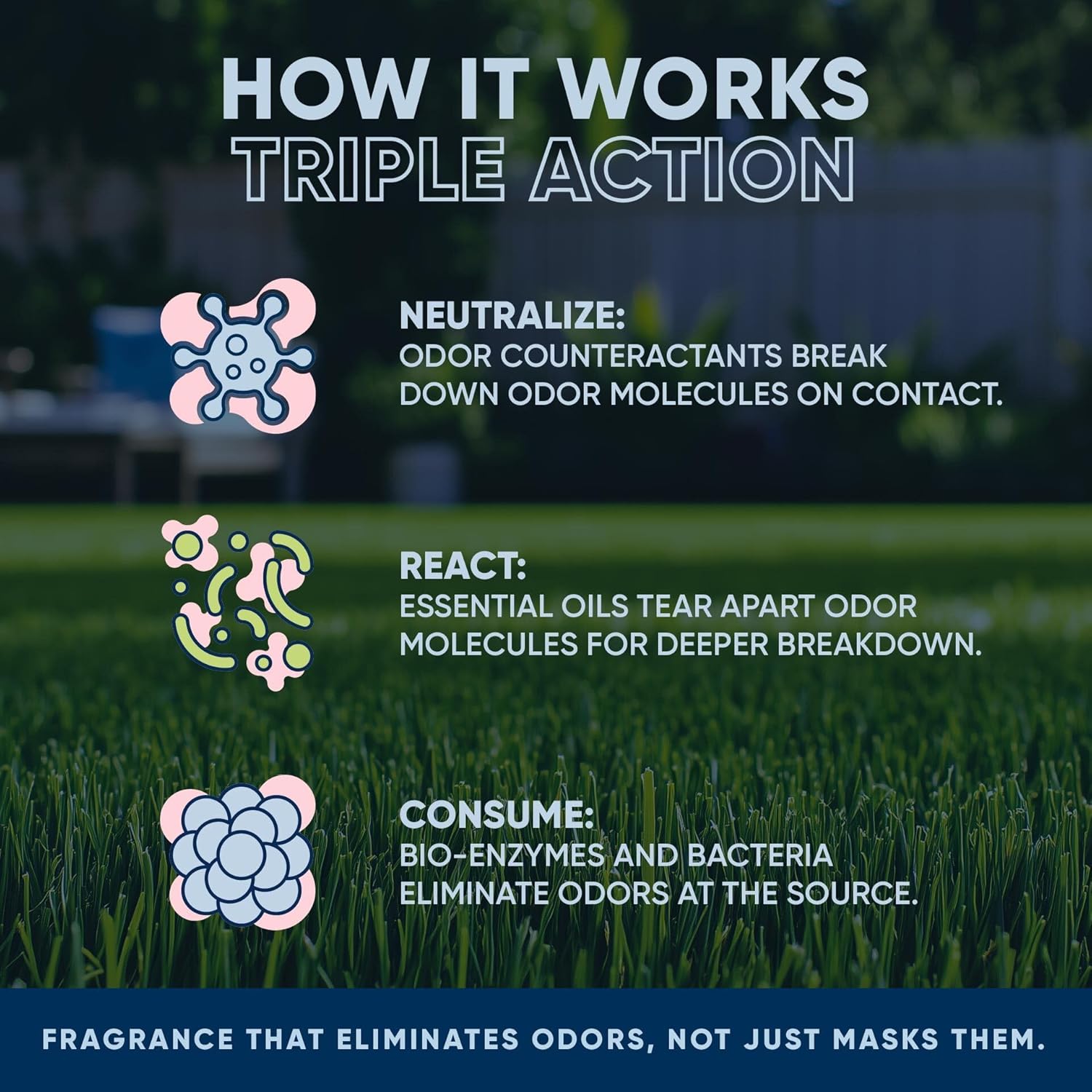 • Multi-Purpose: No job is too big or small for this solution; whether you have an apartment patio with no yard hose access (use Eco Strong Outdoor Odor Eliminator Spot Treat) or a large yard, we have you covered.