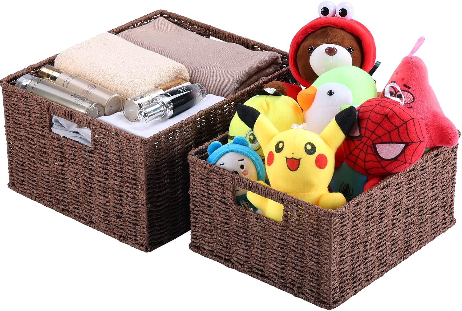 HOONEX Large Woven Storage Baskets, Paper Rope With Sturdy Metal Wire Frame, for Shelves, Set of 2, Dark Brown